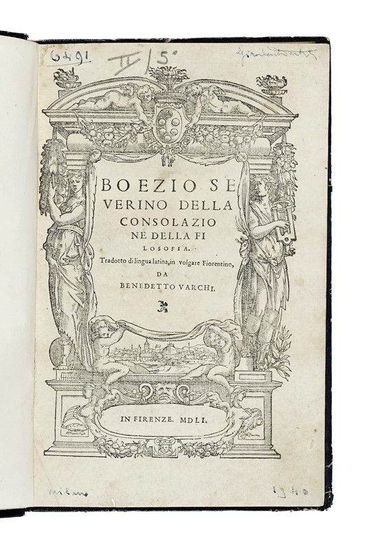 In-4° (mm 216x135). Pagine 177, [1]. Bel frontespizio entro cornice xilografica abitata con vedutina di Firenze. Alcune carte macchiate, assente l'ultima carta bianca. Legatura moderna in piena percallina blu. Alcune mancanze lungo le cerniere. Note di possesso e collocazione a penna al frontespizio, altra nota di possesso datata 1858 sul contropiatto posteriore.