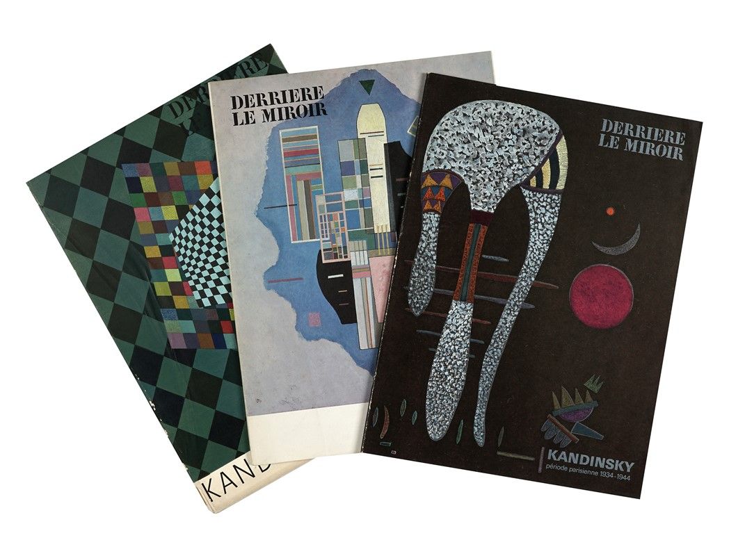 Compongono il lotto: 1) Derriere Le Miroir. N. 118. Kandinsky 1921-1927. Paris: Maeght Editeur, 1960. In-folio (mm 380x280). Con le litografie a colori di Vasilij Kandinskij, anche doppia pagina. Brossura editoriale illustrata, con mancanze al dorso; 2) Derriere Le Miroir. n. 154: Kandinskij Bauhaus de dessau 1927-1933. Paris: Maeght Editeur, 1965. In-folio (mm 380x284). Con numerose tavole a colori, anche a doppia pagina, da dipinti dell'Artista. Brossura editoriale illustrata, in buone condizioni di conservazione; 3) Derriere Le Miroir. N. 179: Kandinskij période parisienne 1934-1944. Paris: Maeght Editeur, 1969. In-folio (mm 380x284). Con numerose tavole a colori, anche a doppia pagina, da dipinti dell'Artista. Brossura editoriale illustrata, in buone condizioni di conservazione.