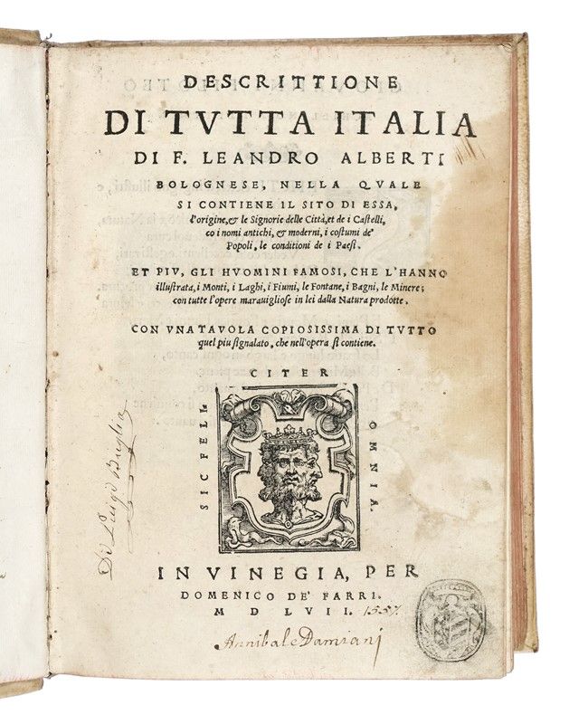 In-4° (mm 212x152). Carte [38], 464, [1], 1 bianca. Sporadiche pagine brunite, un sottile lavoro di tarlo nel margine inferiore dei fascicoli da r a z che tocca piccolissime porzioni di testo, per il resto buona copia. Legatura successiva in piena pergamena rigida con titoli in oro su tassello al dorso. Tagli rossi. Ex-libris di precedente collezione applicato al contropiatto anteriore, timbro e note di possesso di precedenti collezioni sul frontespizio.