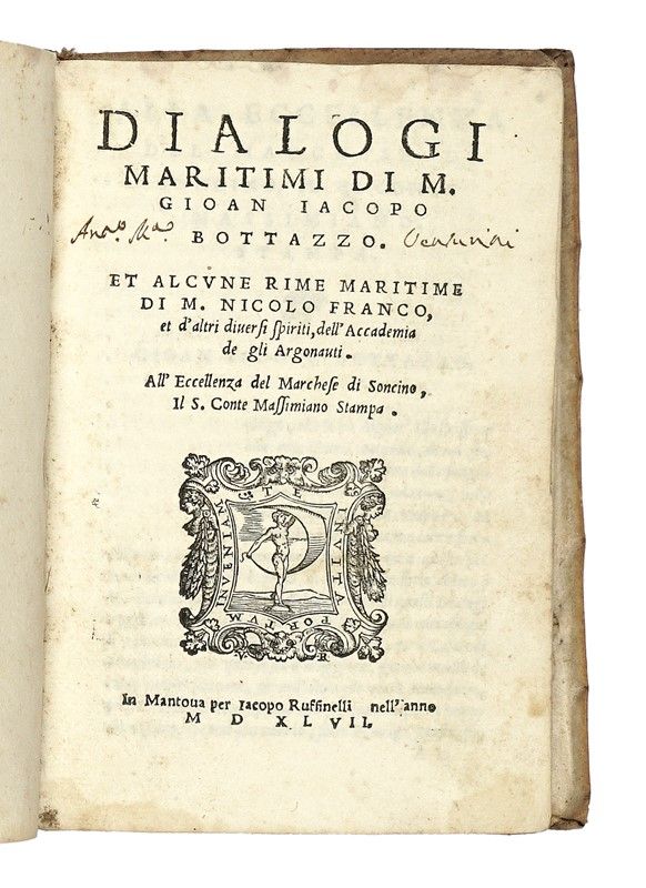 In-8° (mm 154x100). Carte 168. Piccola marca tipografica al frontespizio. Piccoli forellini di tarlo marginali in alcuni fascicoli, nel complesso buona copia. Legatura coeva in piena pergamena floscia con titolo manoscritto al dorso. Nota di possesso manoscritta al frontespizio.