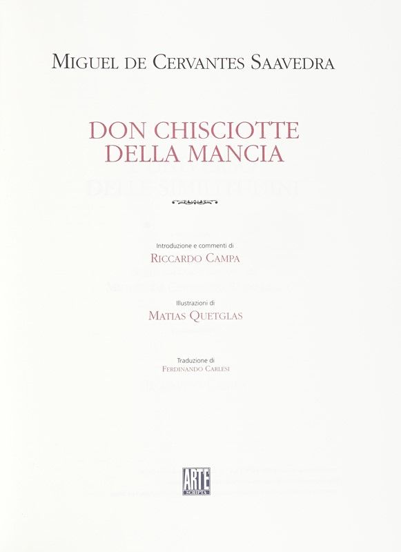 2 volumi in-folio (mm 450X315). Esemplare perfettamente conservato, contenente 14 tavole a colori fuori testo e 20 illustrazioni a colori nel testo, tratte da opere e disegni originali realizzati appositamente per questa edizione da Matias Quetglas. Legatura editoriale in pelle, con titoli e illustrazione in oro al piatto anteriore e al dorso a 6 nervi. Entro cofanetto originale in piena pelle, con un bassorilievo ricoperto in argento applicato al piatto firmato e numerato dall'Artista in lastra. Uno dei 975 esemplari, ad personam, su una tiratura complessiva di 1050 copie numerate e firmate dall'Artista al colophon.