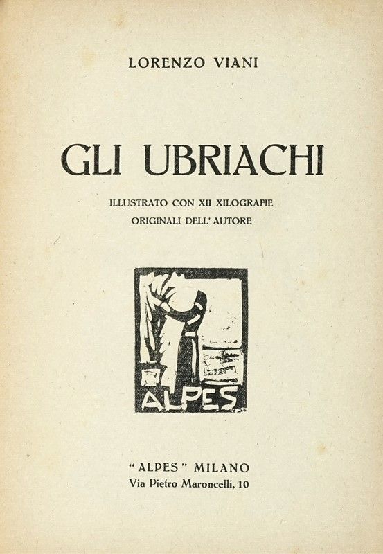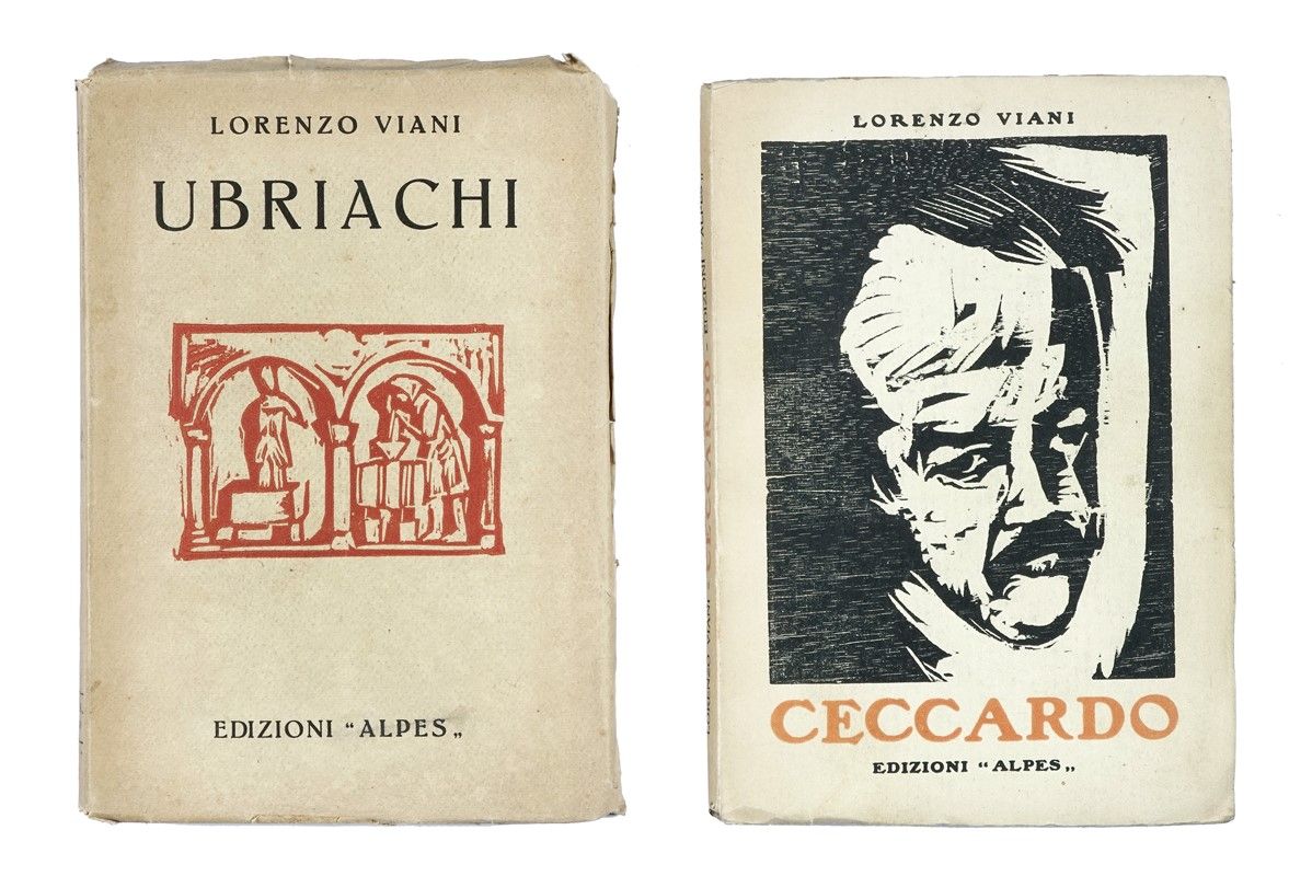 In-8° (mm 195x135). Pagine 277, [5] con 12 xilografie a piena pagina. Esemplare in barbe, con lievi arrossature marginali e fioriture sparse. Brossura editoriale con titolo, autore e xilografia impressa in rosso al piatto anteriore. Leggermente lisa, con alcune mancanze lungo le cuffie e al margine superiore esterno del piatto posteriore. SI AGGIUNGE: Id., Ceccardo. Milano: Alpes, 1922.