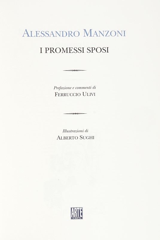 In-folio (mm 450x315). Esemplare perfettamente conservato, contenente 11 tavole a colori fuori testo e 12 illustrazioni in bianco e nero nel testo, tratte da opere e disegni originali realizzati appositamente per questa edizione da Alberto Sughi. Legatura originale in piena pelle blu, con titoli in oro al dorso a 6 nervi e una serigrafia originale a dodici colori su lastra d'acciaio, ricoperta in oro 24 k, dal titolo Paesaggio Immaginario, firmata e numerata da Sughi. Entro cofanetto editoriale in piena tela, con titoli in oro al piatto e al dorso. Uno dei 975 esemplari, ad personam, su una tiratura complessiva di 1.050 copie numerate e firmate dall'Artista al colophon.