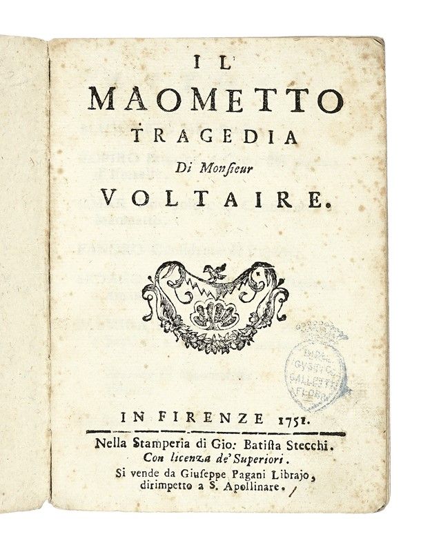 In-12° (mm 145x100). Pagine 79, 1 bianca. Alcune fioriture. Legatura coeva in pieno cartonato rustico con titolo manoscritto sul piatto anteriore. Al contropiatto anteriore ex-libris Landau, sul frontespizio timbro della collezione Galletti.