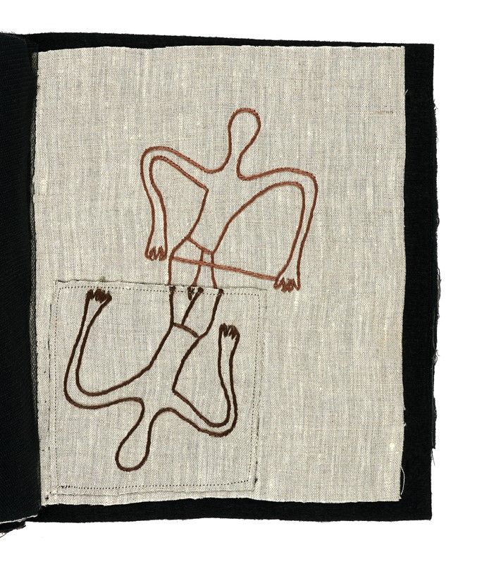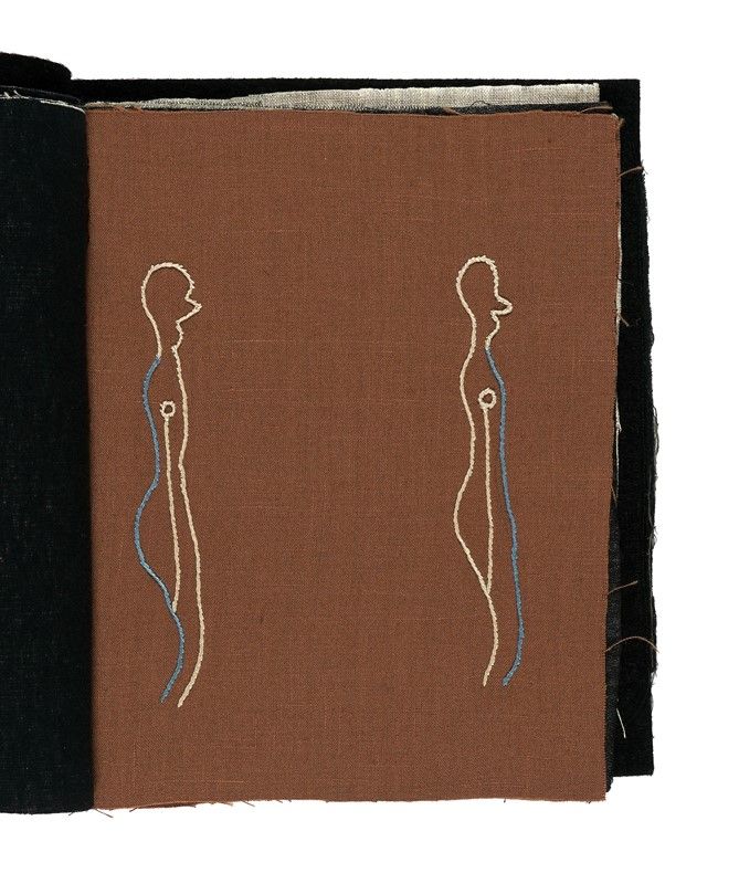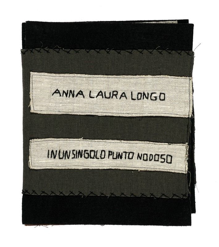 In-8° (mm 260x205). Carte [9], principalmente in lino e feltro, cucite e ricamante con splendidi inserti oggettuali e curvature di filo da Anna Laura Longo, così da comporre vere e proprie traiettorie visive polimateriche e polifunzionali. Legatura in feltro e lino con titoli ricamati al piatto anteriore. Tiratura in 10 esemplari, firmati dall'Artista al piatto posteriore.
