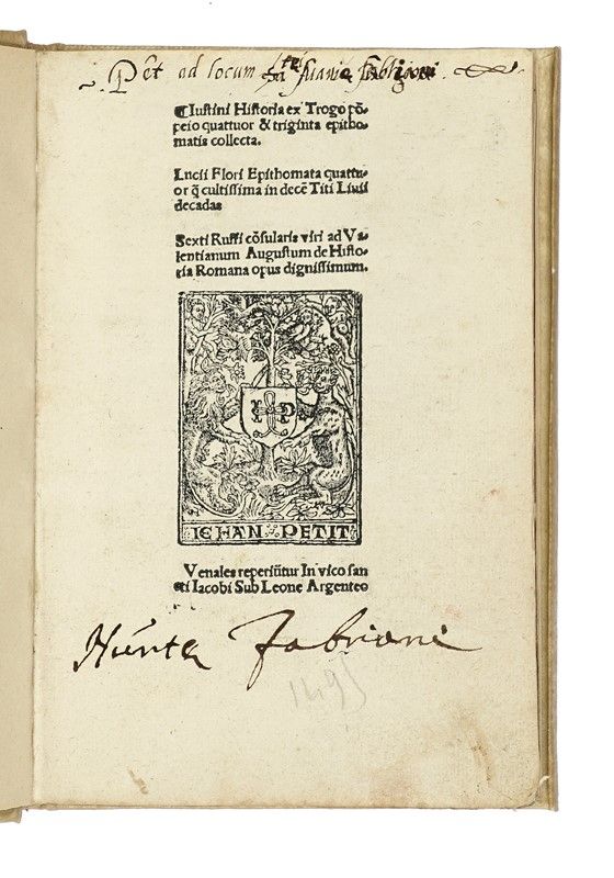 In 4° (mm 197x134). [18], CXL [i.e. CXLI], [1] carte (ultima bianca). Collazionato completo. Marca xilografica di Jean Petit al frontespizio, bellissime iniziali xilografiche su fondo criblé (varie dimensioni). Carte occasionalmente brunite in modo pallido, fascicolo "m" leggermente più corto, strappo restaurato a r4. Pergamena rigida moderna con titolo manoscritto al dorso. Antiche firme di appartenenza al frontespizio.