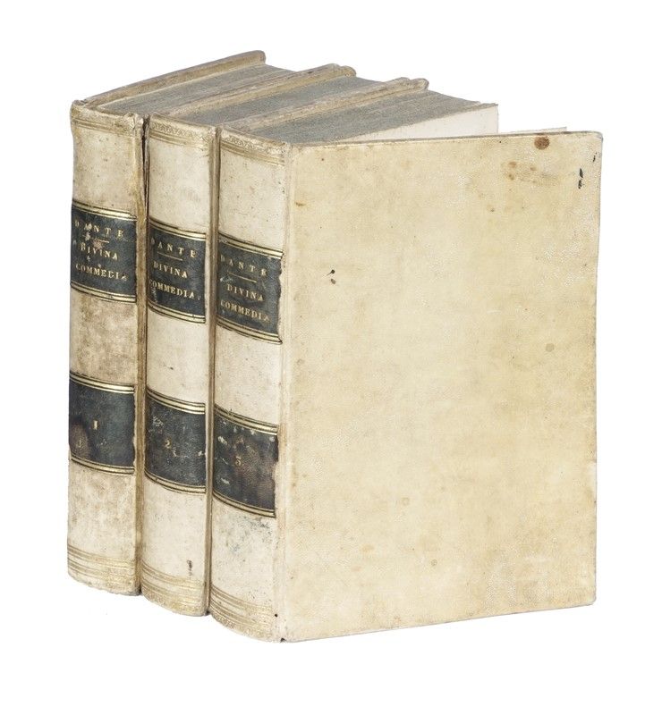 3 volumi in-8° (mm 210x135). Pagine LXXXIV, 474, [2] con 2 tavole calcografiche fuori testo; [4], 494, [2] con 1 tavola calcografica fuori testo; [4], 492, XXI, [1] con 1 tavola fuori testo. Nel terzo volume gora d'acqua nel margine inferiore delle carte. Legatura coeva in piena pergamena rigida con titoli in oro su tassello al dorso, tagli spruzzati in blu.