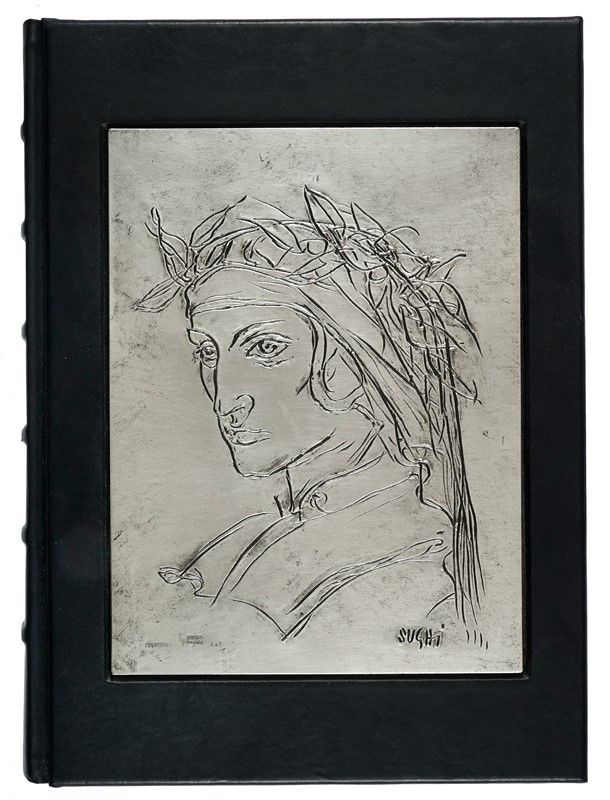 In-folio (mm 452x315). Ottimo esemplare, con 10 belle acqueforti di Alberto Sughi a colori, fuori testo e protette da velina, due delle quali a doppia pagina. Legatura originale in piena pelle, con titoli in oro al dorso a sei nervi e con una scultura originale a bassorilievo realizzata in fusione, ricoperta in argento 925 millesimi e patinata con speciale procedimento manuale presso la Fonderia Artistica Farbel di Brescia, firmata e numerata dall'Artista. Uno dei 975 esemplari in numeri arabi, su una tiratura complessiva di 1050, firmate a matita da Sughi al colophon.