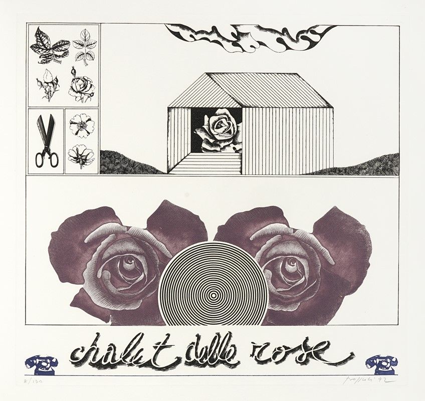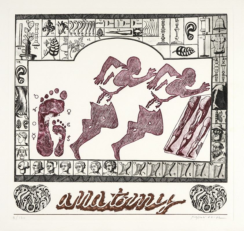 In-folio (mm 420x435). Con 12 acqueforti di Concetto Pozzati incise in vari colori, 1 al frontespizio (mm 110x160), 10 a piena pagina nel testo (mm 365x385. Foglio: mm 410x430) e 1 a piena pagina fuori testo (mm 365x385. Foglio: mm 410x430). Esemplare in barbe a bifoli sciolti, con le 11 acqueforti a piena pagina numerate in basso a sinistra e firmate a matita dall'Artista in basso a destra. Rare fioriture. Il tutto entro cofanetto editoriale in mezza tela, con illustrazione e titoli al piatto anteriore. Tracce d'uso. Esemplare 8/130, su una tiratura complessiva di 155 copie.