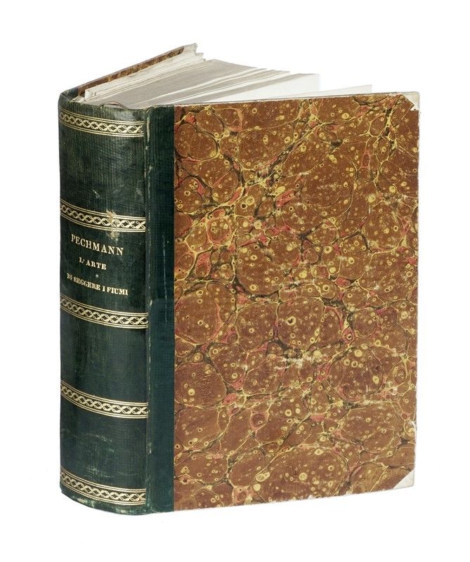 3 parti in 1 volume in-4° (mm 240x150). Pagine XVI, 208, [16]; [5], 210-446, [22]; [4], 449-738, [18] con 4 tavole tipografiche ripiegate e 20 tavole calcografiche ripiegate numerate I-XX. Sporadiche fioriture marginali, per il resto ottima copia. Legatura in mezzo marocchino verde con piatti in carta marmorizzata e titolo in oro al dorso.