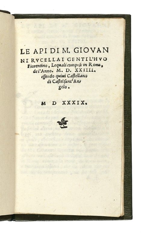 In-8° (mm 150x82). Carte [22] di [24]. Assenti le carte C7 e C8, bianche. Un piccolo lavoro di tarlo richiuso nel margine esterno della prima metà delle carte, senza perdita d'inciso. Legatura moderna in mezzo marocchino verde con piatti in percallina e titoli impressi in oro al dorso. Sguardie marmorizzate.