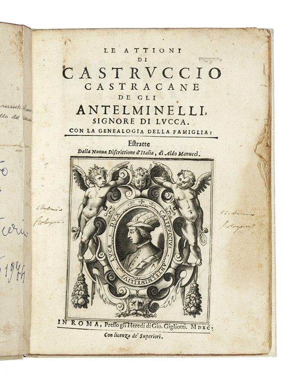 In-4° (mm 210x160). Pagine [10], 130, [44]. Ritratto di Castracane inciso in rame al frontespizio entro bella cornice sorretta da putti ed emblema di Carlo V inciso in legno in fine. Brunitura marginale alle prime carte, sporadiche fioriture ma copia completa. Legatura moderna in piena pergamena rigida con titoli impresssi in oro al dorso. Note manoscritte a penna alla prima carta bianca, note di mano antica in fine di volume (concentrate a carta R2).