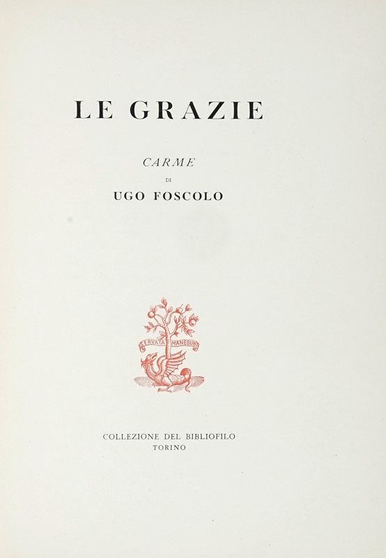 In-folio (mm 350x250). Pagine 66, [2]. Con 3 litografie originali in nero sciolte di Felice Casorati. Esemplare a bifoli sciolti, in ottima conservazione. Cartella editoriale in cartonato, con titoli al piatto anteriore. Uno dei 150 esemplari numerati da 26 a 175, con una serie in nero delle litografie, su una tiratura complessiva di 175 esemplari su carta distinta avorio della Cartiere Binda.