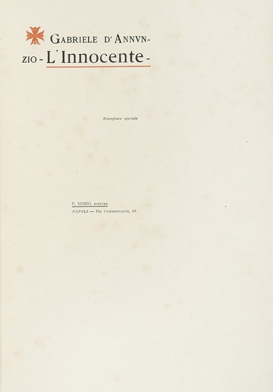 In-folio (mm 290x200). [6], 372, [4]. Occasionali fioriture ma copia completa, impressa su carta forte, in barbe e parzialmente intonsa. Legatura d'amatore in pieno marocchino rosso con cornici dorate ai piatti e titoli e decorazioni in oro al dorso, dentelles alle unghiature, sguardie in carta marmorizzata. Contenuto entro cofanetto coevo in carta marmorizzata. Legatura firmata Gozzi (Modena). Piatti della brossura originale conservati all'interno.