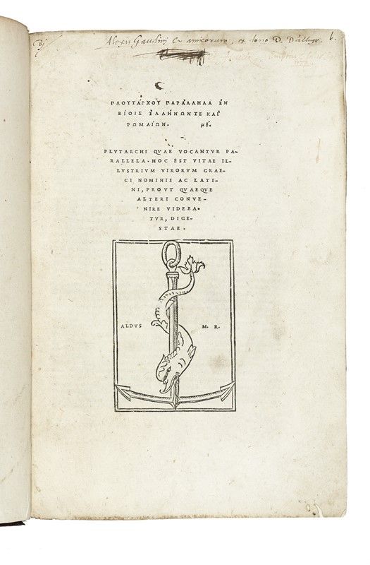 In folio (mm 310x196). [4], 345, [1]. Marca xilografica al frontespizio, ripetuta in fine. Alcuni piccoli lavori di tarlo marginali su poche carte (senza perdita di testo), rari fascicoli con gore marginali. Carte 332 e 333 di diverso formato e conservate staccate, provenienti da un'altra copia. Nel complesso buon esemplare. Bella legatura coeva parlante in piena pelle con impressioni dorate ai piatti (nome dell'autore stampigliato in greco al piatto anteriore). Titolo e decorazioni in oro ai comparti del dorso, tagli oro. Mancanze lungo cerniere e unghiature. Ex-libris di precedenti collezioni applicati al contropiatto anteriore, nota di possesso manoscritta sul frontespizio.