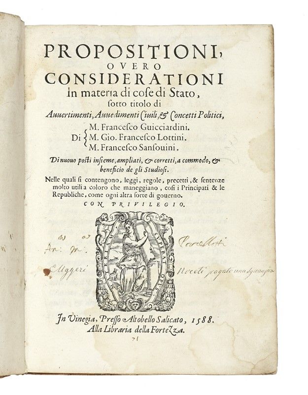 In-4° (mm 220x165). Carte [8], 156. Ritratto dell'Autore entro cornice ovale decorata al verso della carta *8. Copia marginalmente gorata. Legatura coeva in piena pergamena floscia con titoli manoscritti al dorso. Lacerti di legacci. Nota di possesso manoscritta al frontespizio.
