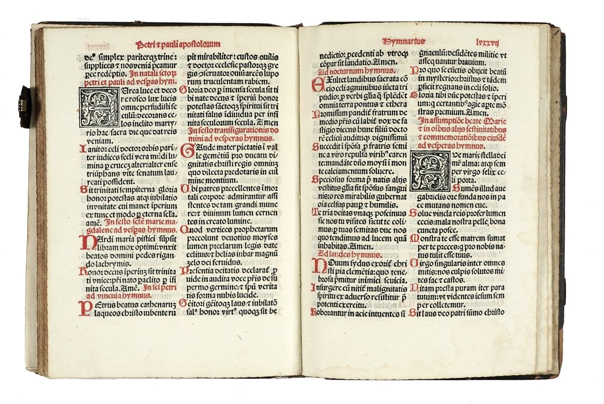In-4° (mm 220x160). Carte [8], xcvj [i.e. 88]. Segnatura: *8, b-m8. Testo in caratteri gotici, su doppia colonna, su 31 righe più il titolo. Graziose iniziali in legno e marca tipografica xilografata al verso del colophon. Allentato il primo fascicolo, con uno strappetto restaurato alla carta l8 e altri minimi difetti. Legatura veneziana della metà del XVI secolo in marocchino, con piccolo timbro dorato di San Giovanni Battista fanciullo al piatto anteriore e iscrizione Sor Cherubina di Mercurii a quello posteriore, entrambi entro elaborate cornici concentriche. Presente uno dei due fermagli; dorso a 3 nervi e taglio laterale goffrato. Mancanze alle cuffie e difetti alle cerniere, abrasioni ai piatti. Entro custodia moderna con titoli in oro al dorso. Annotazione di cinquecentesca mano al foglio di guardia anteriore.