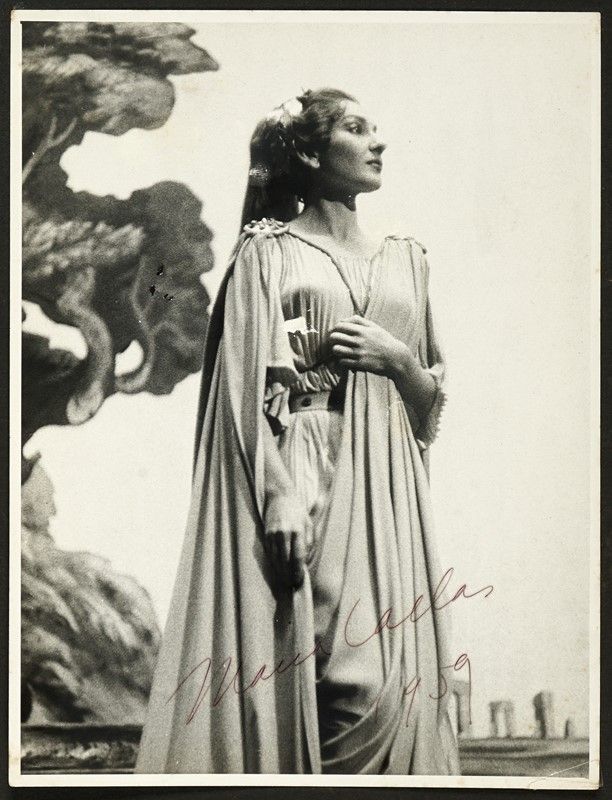 Fotografia in b/n ai sali d’argento. Ritratto originale del fotografo inglese David Sim. Autografo a inchiostro bruno: Maria Callas 1959, di mano dell’artista. Al verso, timbro di Exclusive Copyright di Sim, con l’indirizzo del suo studio londinese, nel West End. Minimi segni del tempo. Fotografia incollata al verso del bordo superiore a passe-partout nero. Dimensioni 165x215 mm.