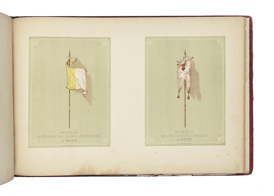 In-folio oblungo (mm 298x430). Pagine VI, 66. Con, complessivamente, 46 tavole in bianco e nero e a colori fuori testo, di cui 9 a piena pagina. Frontespizio stampato in rosso e nero. Pieghe e strappetti marginali all'occhietto, mancanze reintegrate al frontespizio e uno strappo restaurato alle pagine 65-66. Strappetti marginali, senza perdite, ad alcune tavole; bruniture, fioriture e gore diffuse. Legatura editoriale con titoli in oro al piatto e stemmi a secco. Difetti. Esemplare da studio, non passibile di restituzione.