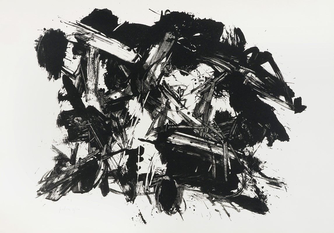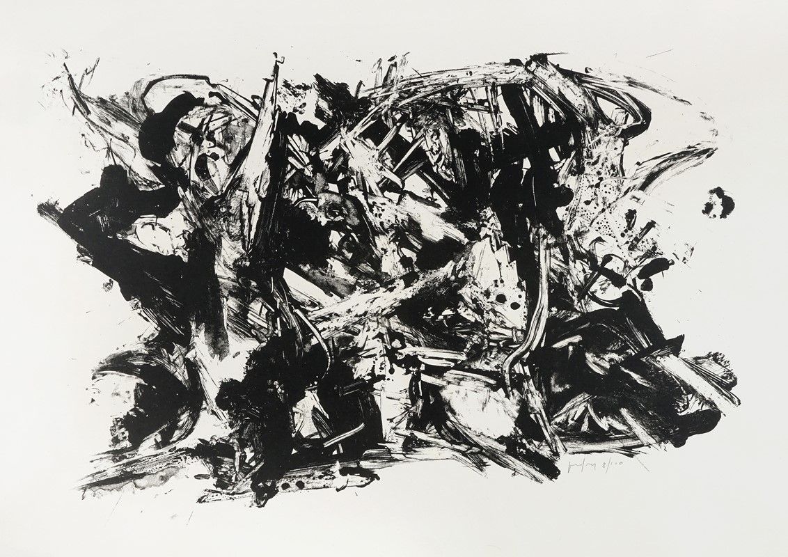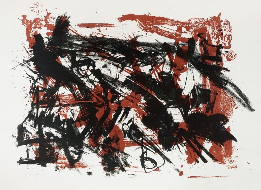 Cartella editoriale in-folio oblungo illustrata al piatto anteriore (mm 440x610). Con [1] carta di frontespizio e [3] carte di testo + 10 splendide litografie originali su pietra di Emilio Vedova (mm 425x595), sciolte, protette da velina, numerate e firmate a matita dall'Artista al recto, titolate e numerate a matita al verso. Si aggiungono altre 4 carte di testo, identiche alle prime, dove non è perfettamente visibile la filigrana. Tiratura in 100 esemplai numerati. Minime tracce di usura i piatti e un leggero difetto alla cerniera della cartella, altrimenti ottima conservazione.