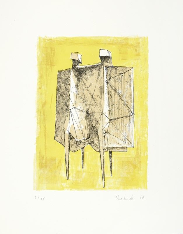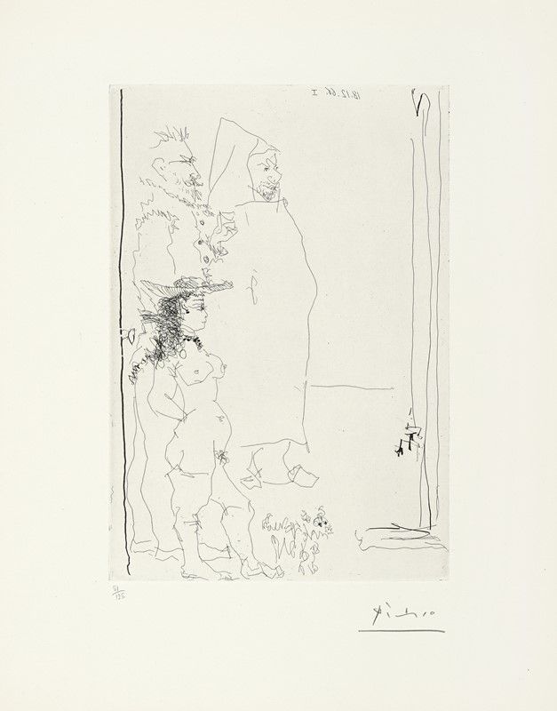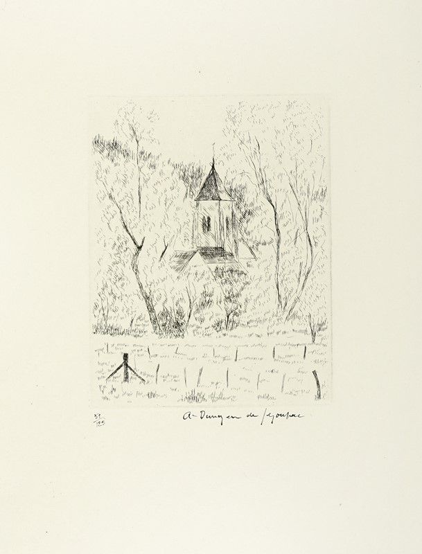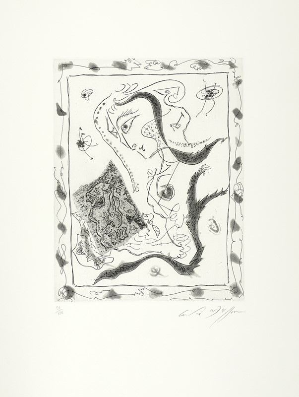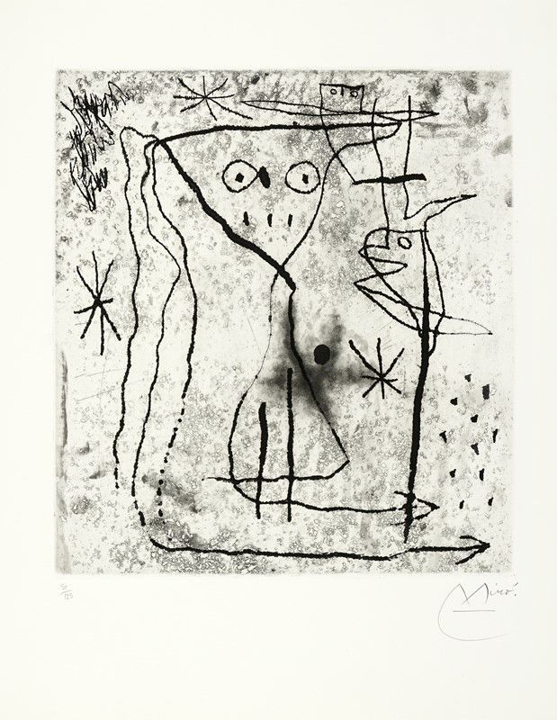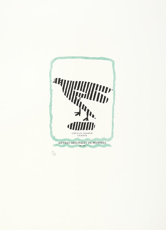In-folio (mm 530x425). Pagine 14, [16] con, complessivamente, 9 acqueforti di Pablo Picasso, Henry Moore, Joan Miró, André Masson, Marino Marini, Max Ernst, André Dunoyer de Segonzac, Marc Chagall e Zao Wou-Ki, 2 litografie originali a colori di Lynn Chadwick e David Siqueiros firmate dagli Artisti e 4 riproduzioni a colori non firmate di Jean Arp, Georges Braque, Henri Matisse e Jacques Villon. Ciascuna numerata e protetta da velina, contenuta sciolta entro bifolio didascalico. Lievi ed uniformi bruniture ad alcune delle veline e all'incisione di Chagall, altrimenti ottimo esemplare a bifoli sciolti, perfettamente conservato entro brossura originale muta, protetta da velina, in splendida cartella editoriale in lino con piatti in legno e fermaglio di chiusura in metallo realizzato da Alexander Calder. Tiratura in 125 esemplari numerati, una delle 85 copie adibite alla vendita.