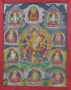Tracce di policromia rossa gialla blu. Indossa il diadema ornato da cinque Citipati (teste di teschi).Presente [..]
