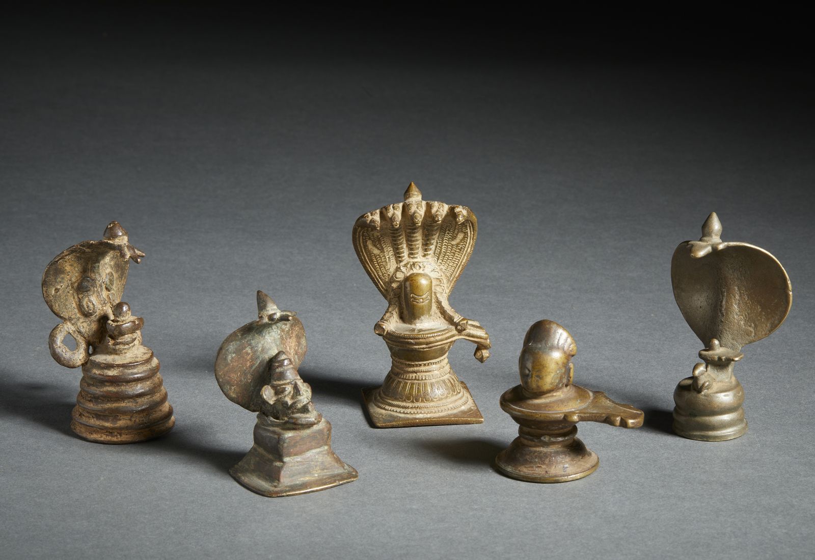 Include: due mukhalinga, uno Shivalingam tribale e altre due forme aniconiche di Shiva sotto serpenti naga. La misura riportata fa riferimento all'oggetto più grande.Provenienza: Collezione Berger.