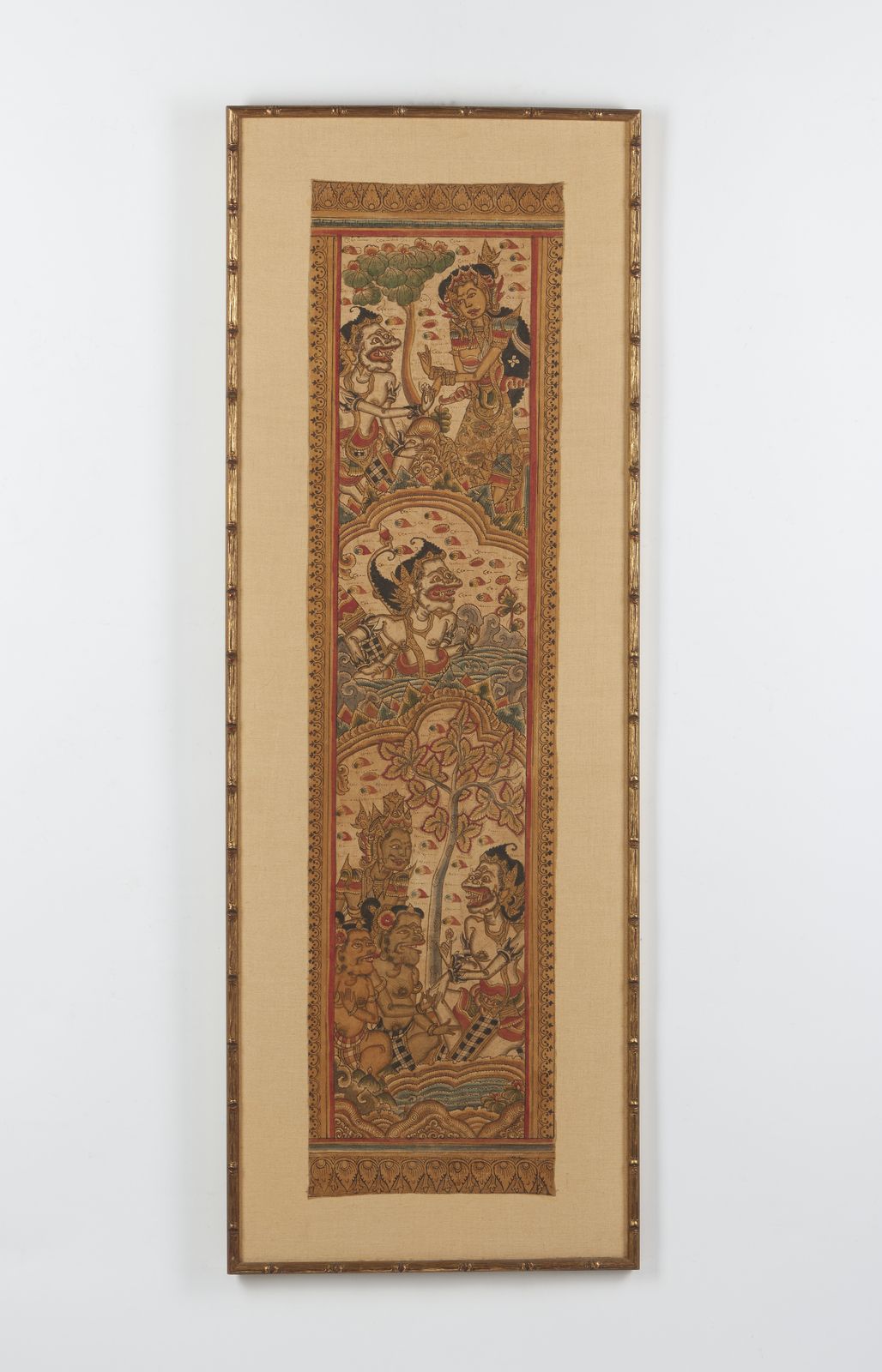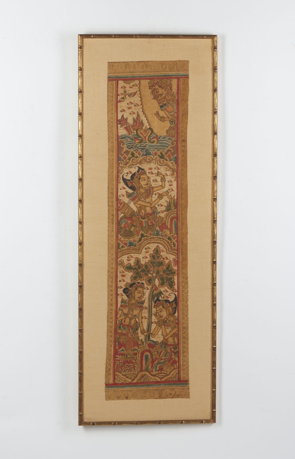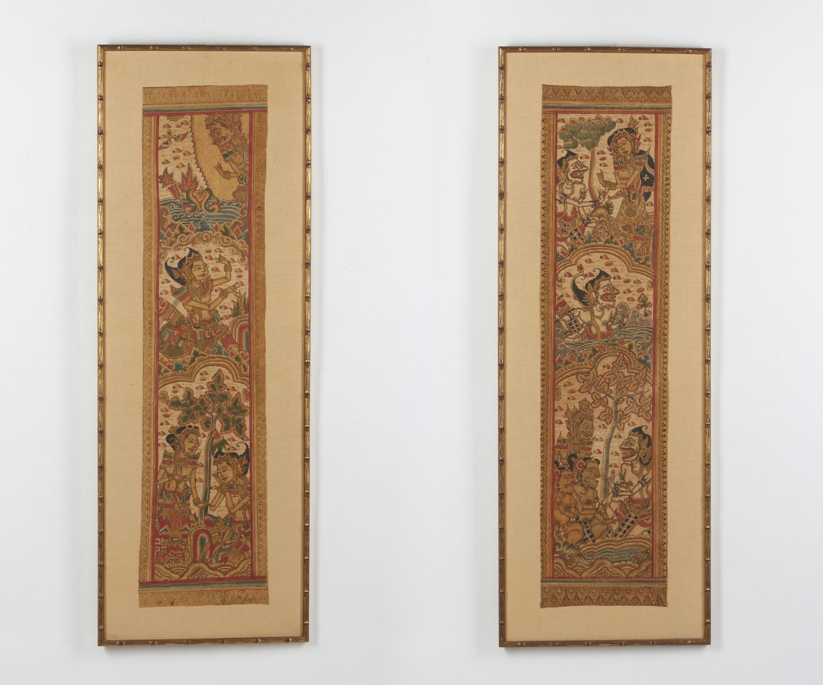 Coppia di dipinti indonesiani su tessuto raffiguranti scene della mitologia induista. [..]