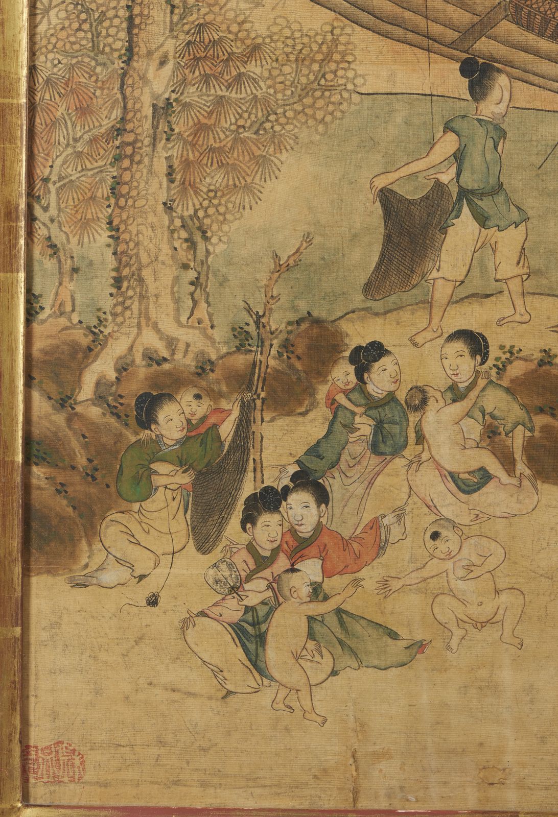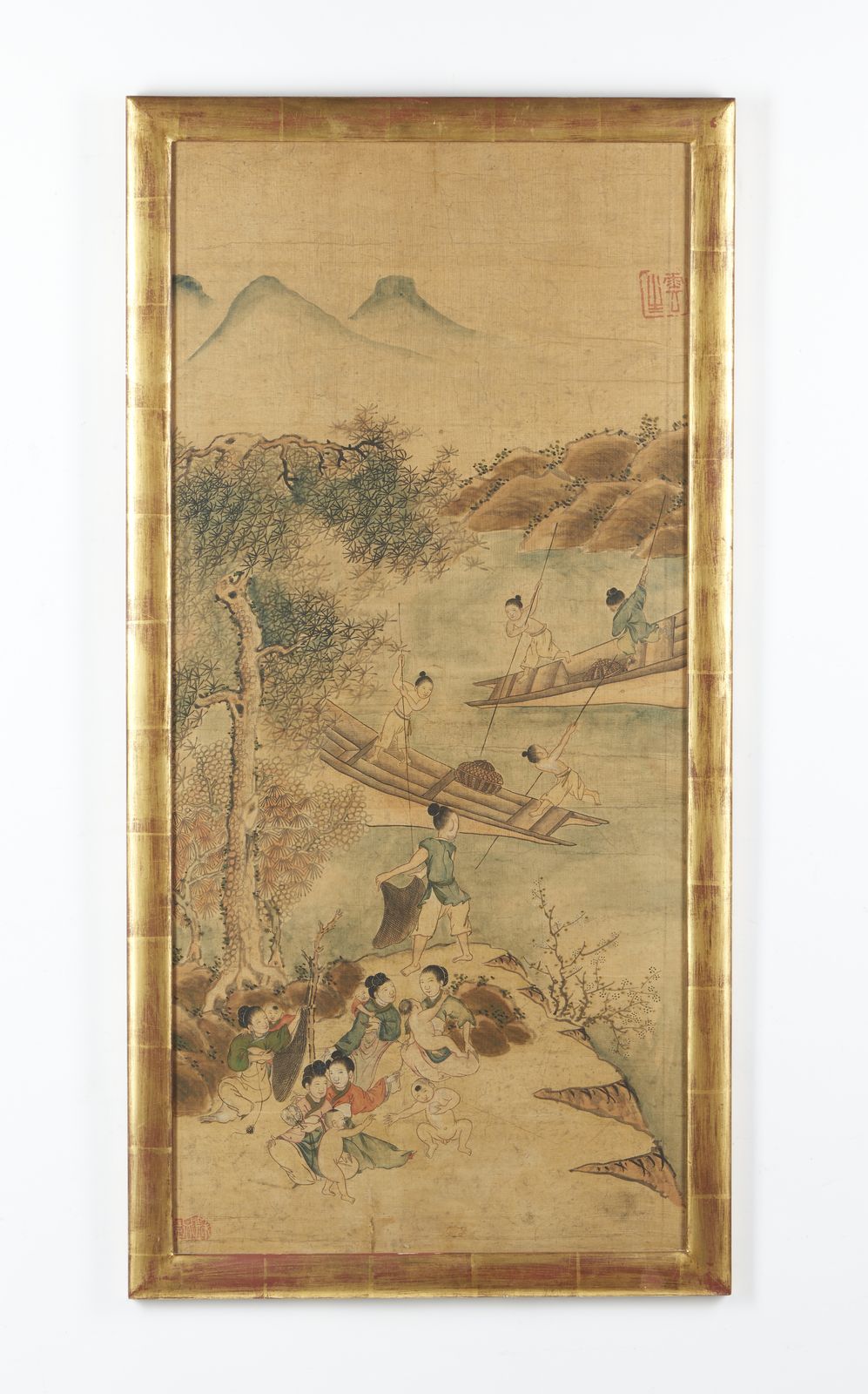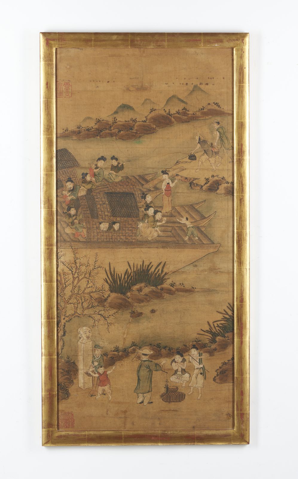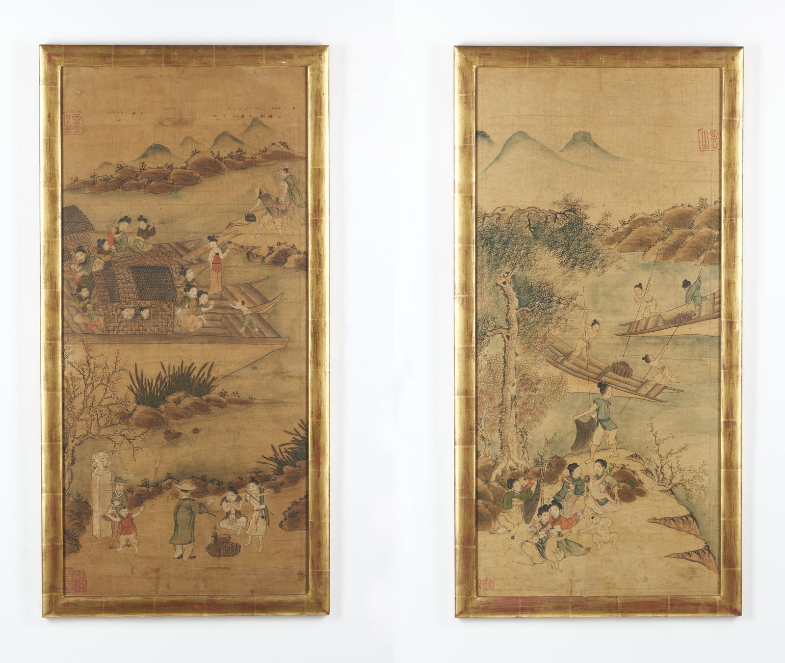 Coppia di dipinti su carta raffiguranti scena di vita campestre.Periodo Meiji.