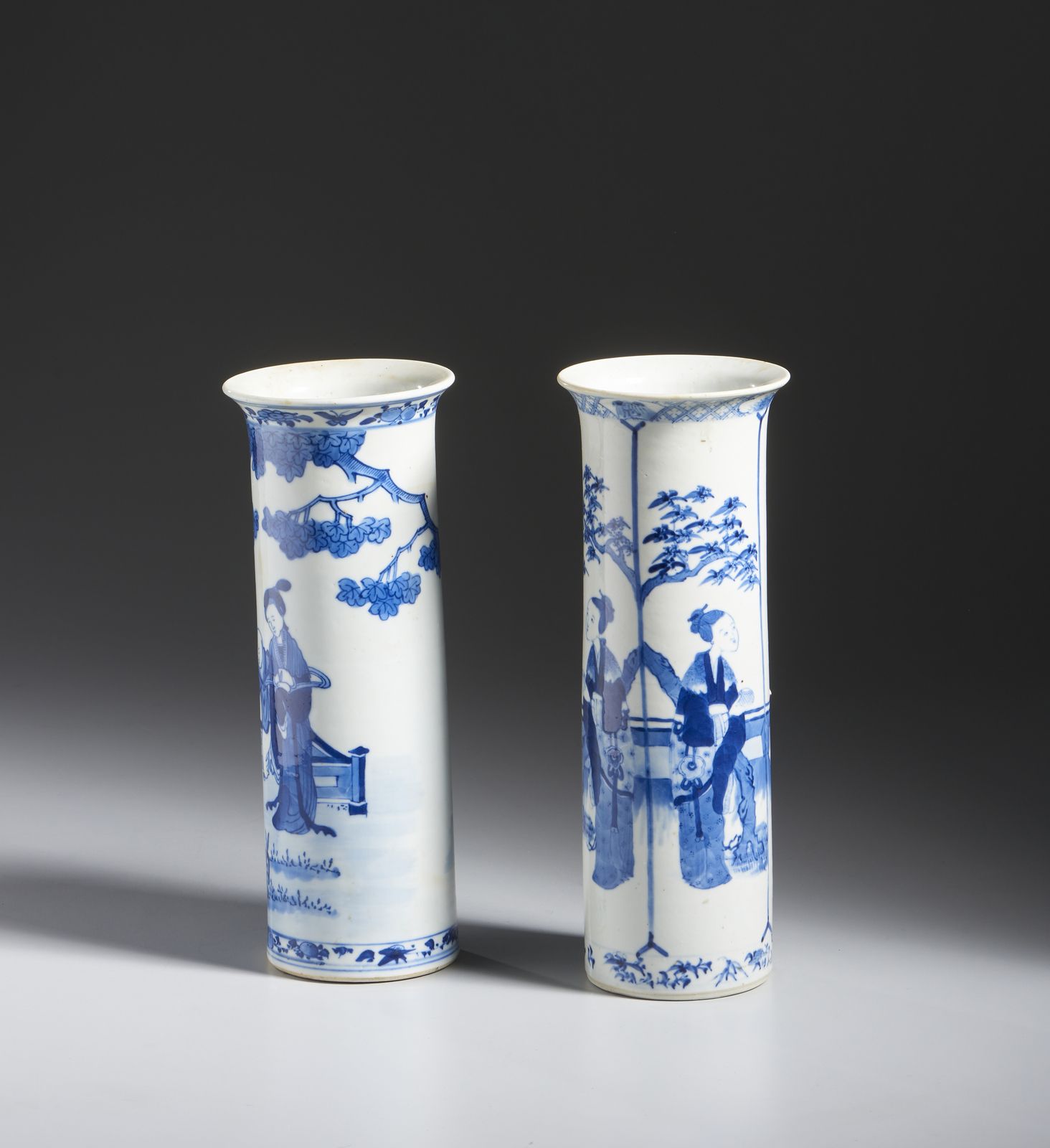 Coppia di vasi bianco blu. Cina, Dinastia Qing, XIX sec.