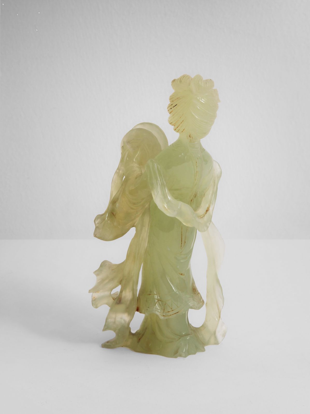 Figura femminile in serpentino verde. Cina, XX secolo.