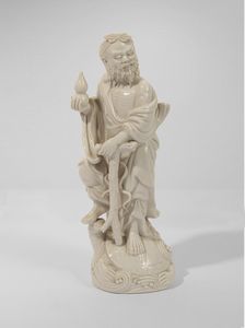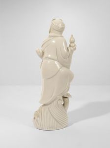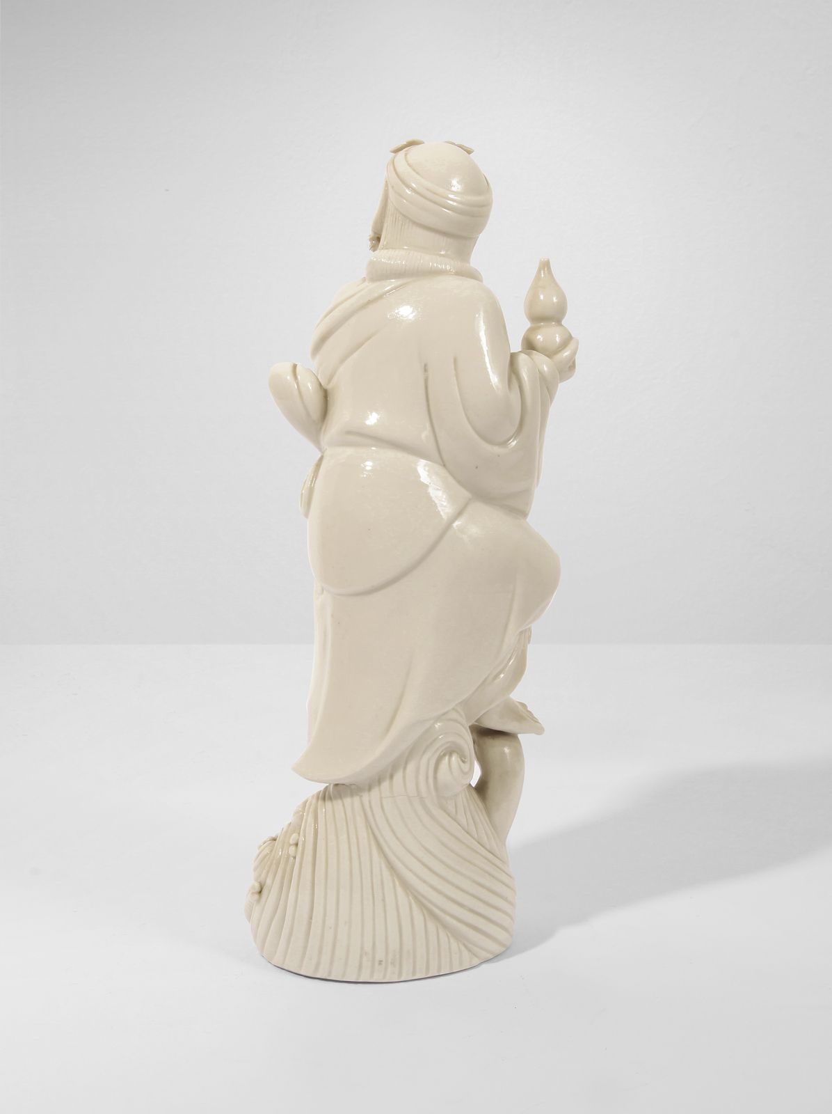 Figura in porcellana cinese bianca De hua raffigurante immortale su tartaruga. Cina, [..]