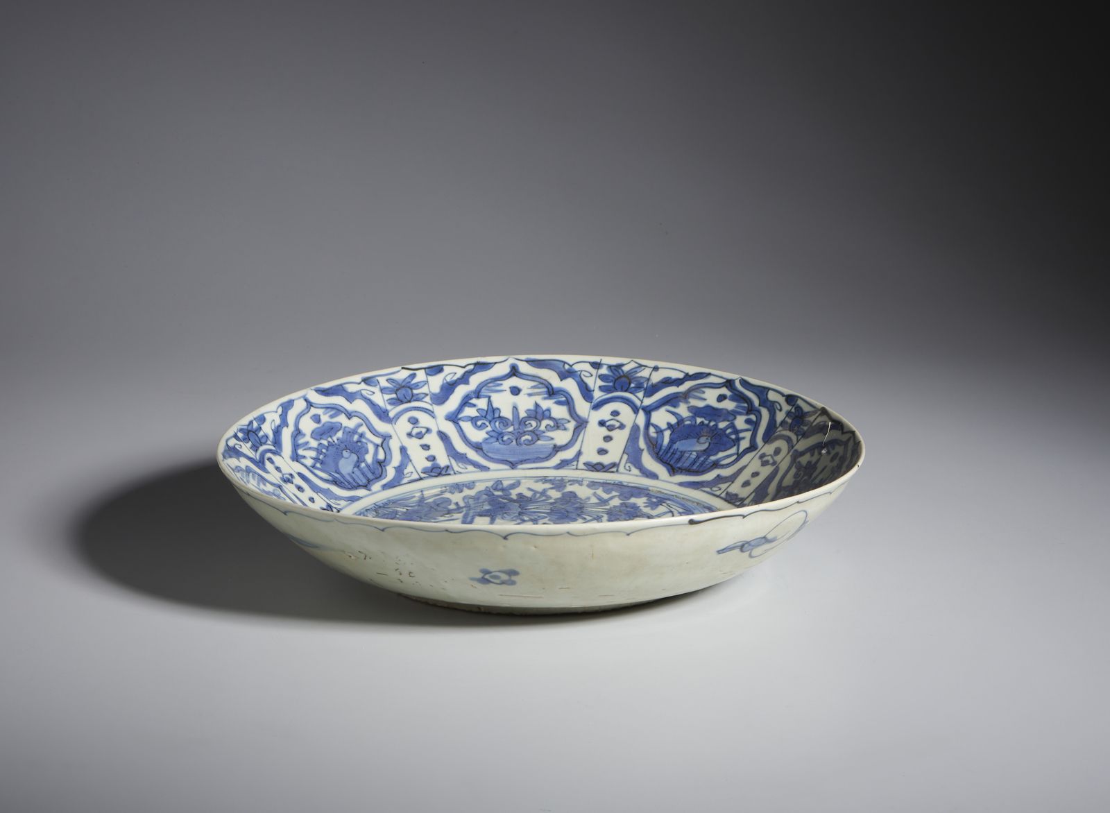 Grande Piatto bianco/blu Swatow in porcellana. Cina, Dinastia Ming, XVII sec.