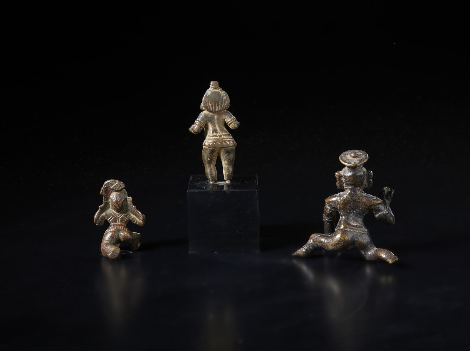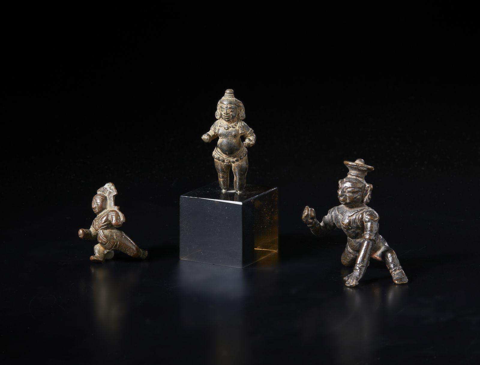 Gruppo di 3 Balakrishna in bronzo. India Meridionale, XIX secolo