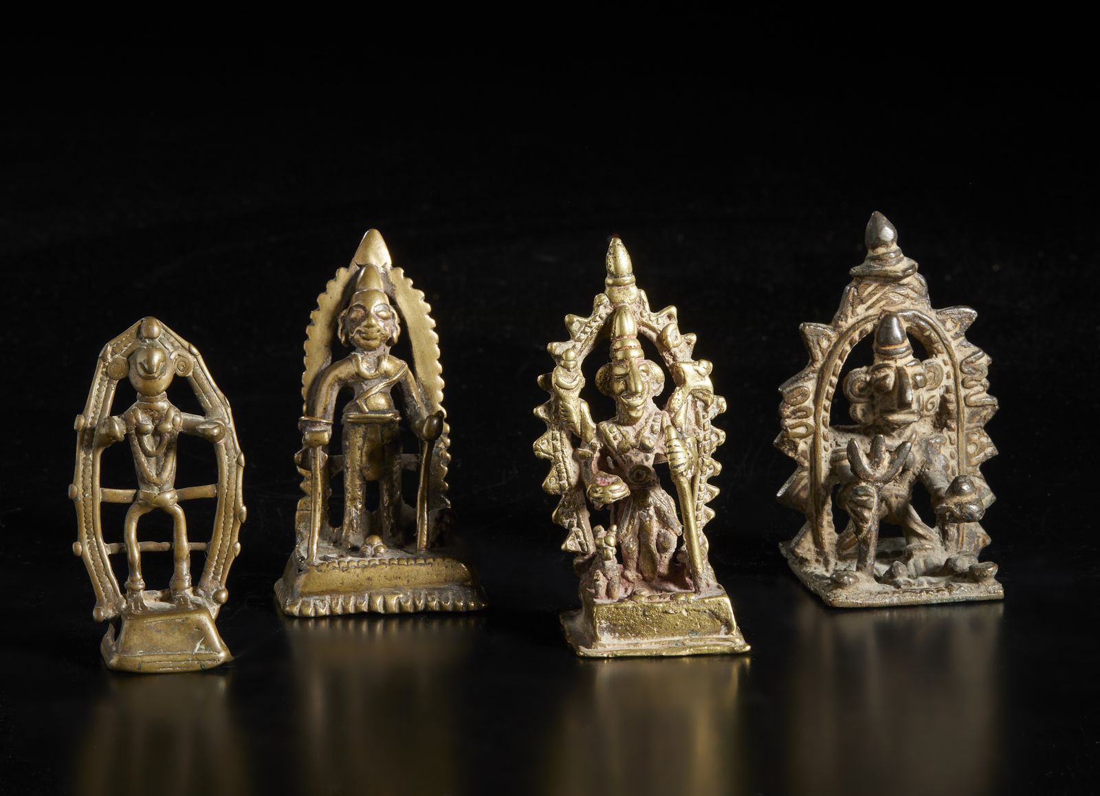 Gruppo di 4 altari in bronzo raffiguranti divinità tribali India popolare, XIX s [..]