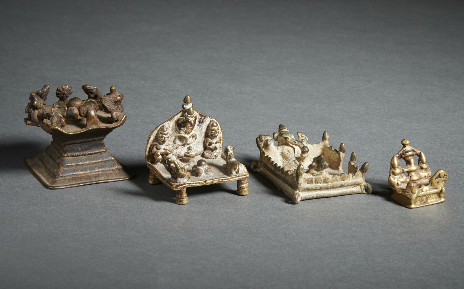 Gruppo di 4 altari Shivalinga in lega di rame India, XIX secolo