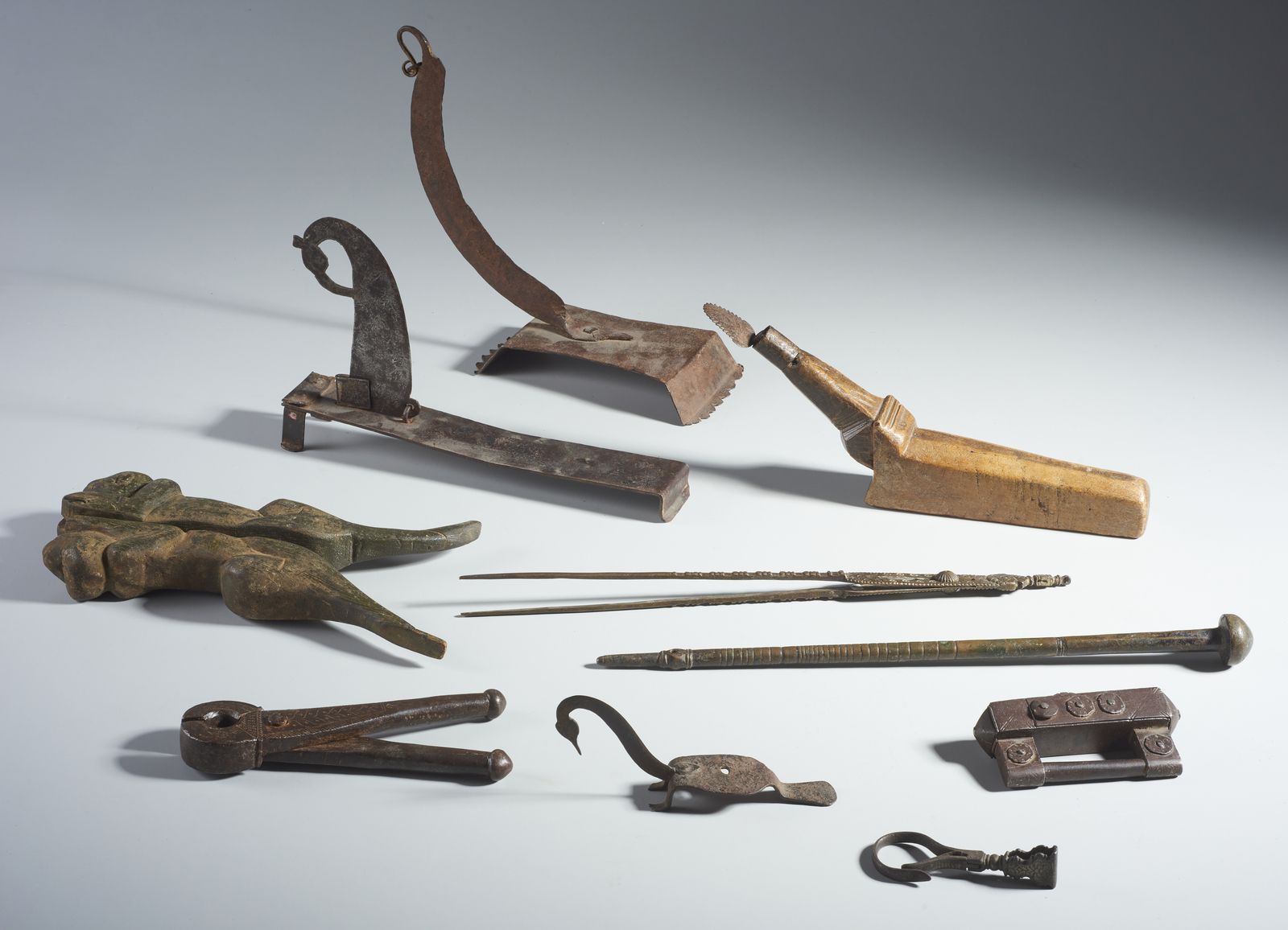 Tra cui: pinze e acciarino.Misure varie. Provenienza: Collezione Berger.