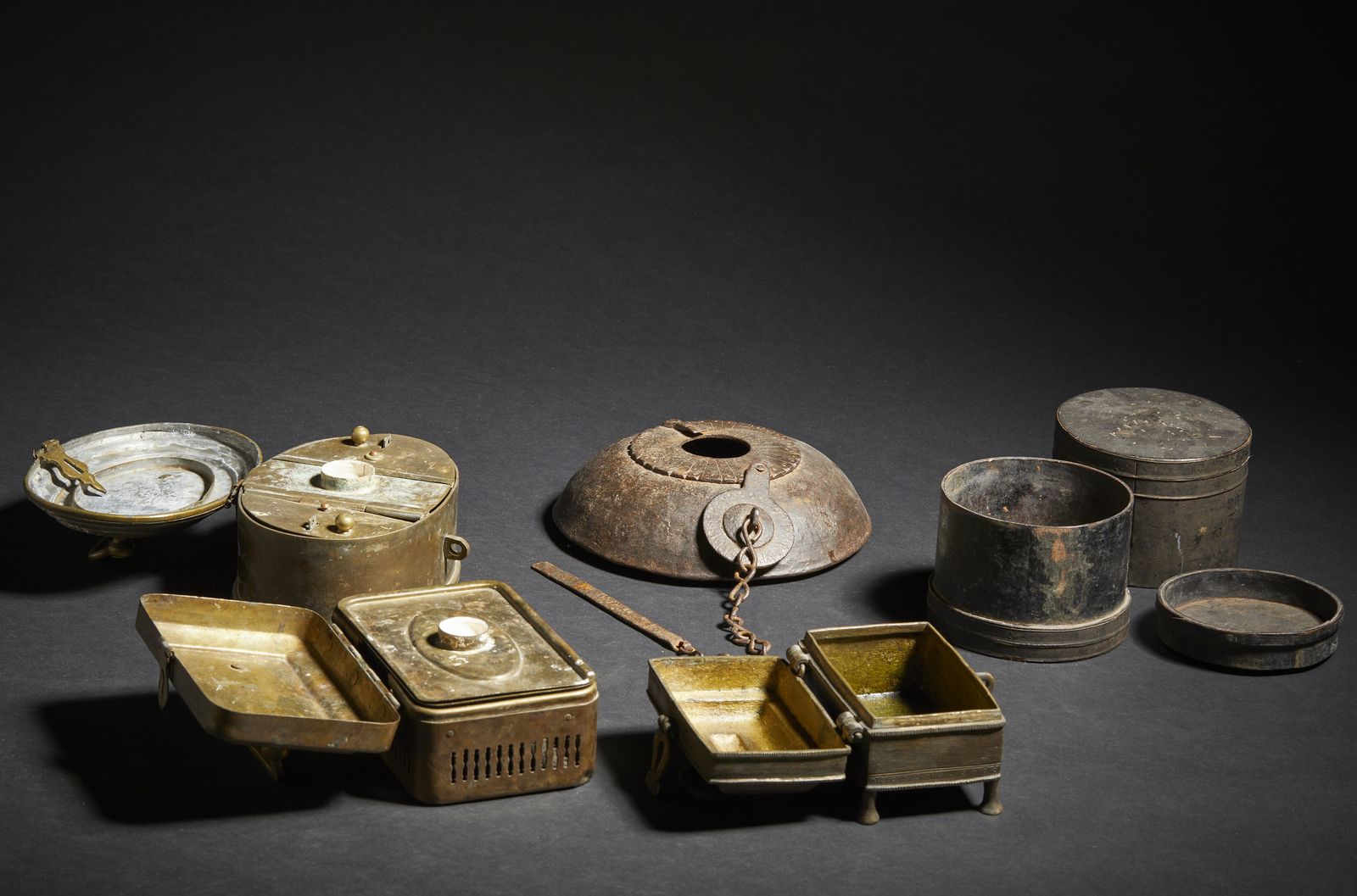 Gruppo di cinque scatole grandi porta spezie. India, XX secolo.