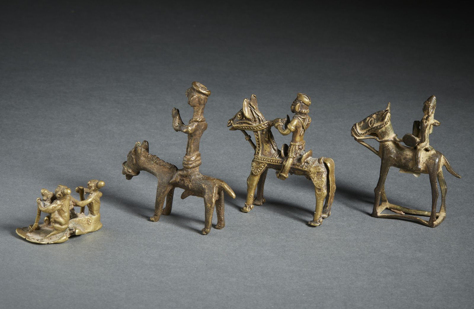 Include. 3 Khandoba a cavallo ed una fusione raffigurante due personaggi. Provenienza: Collezione Berger.