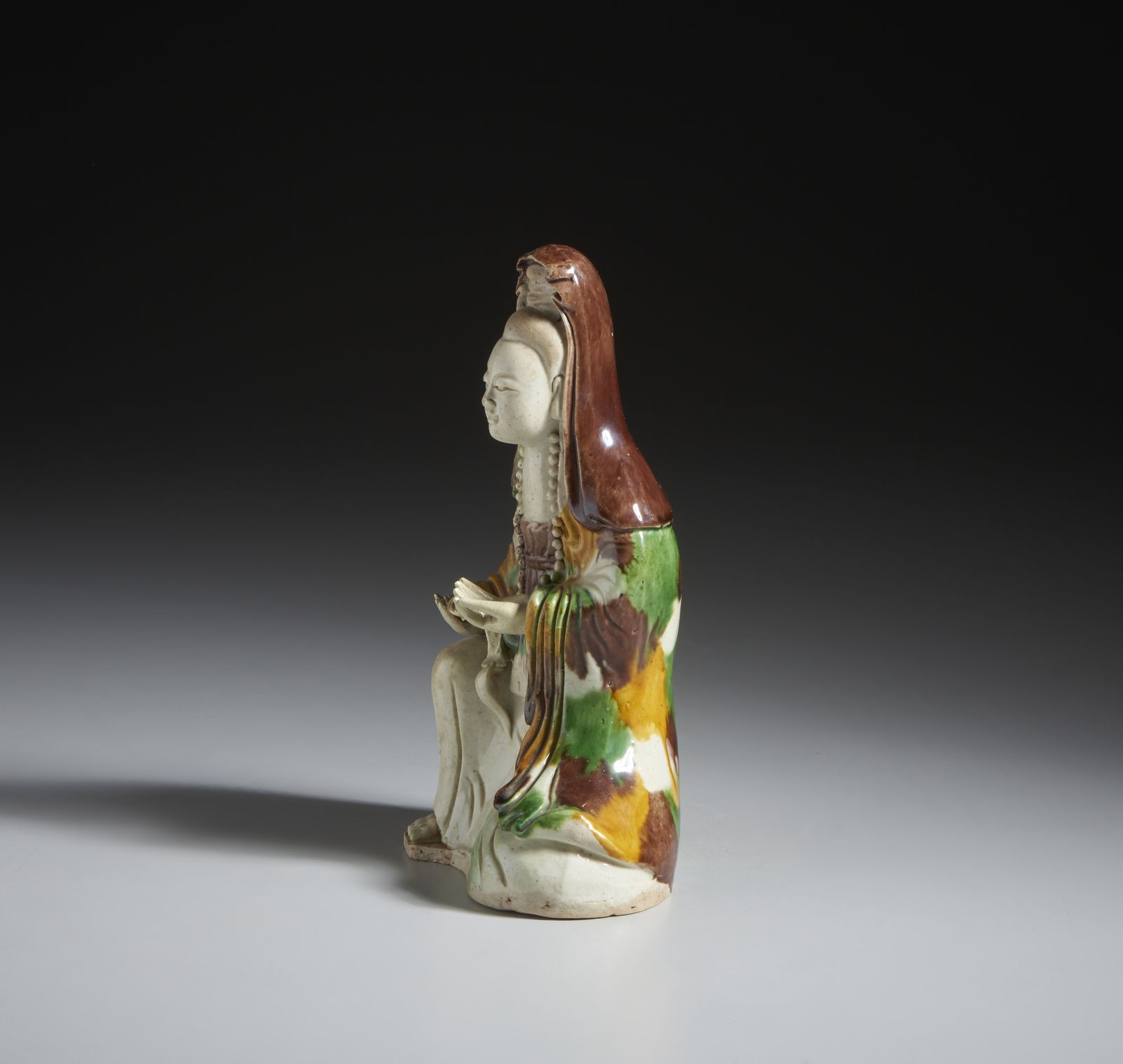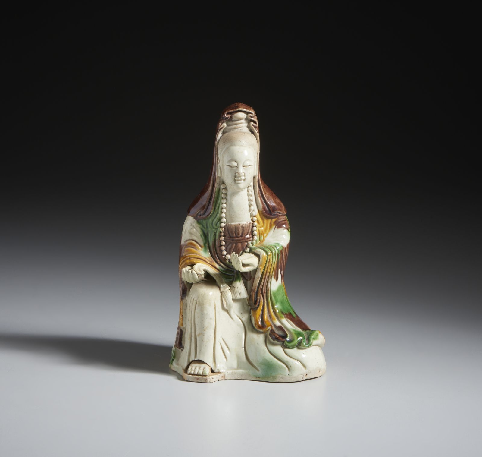 Guanyin in porcellana sancai.Cina, Dinastia Qing, periodo Kangxi.