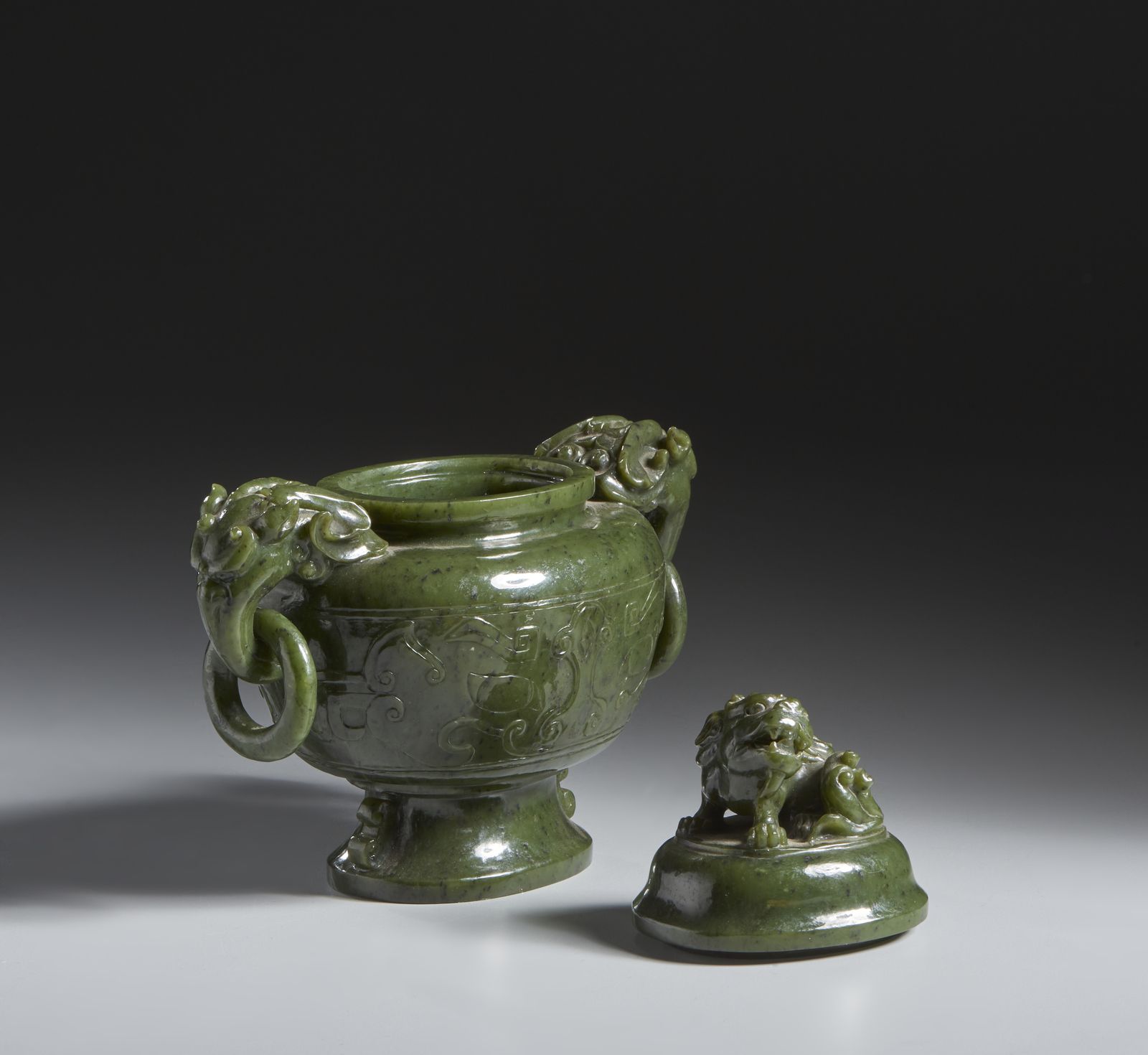 Incensiere in giada verde.Cina, Dinastia Qing, XIX-XX sec.
