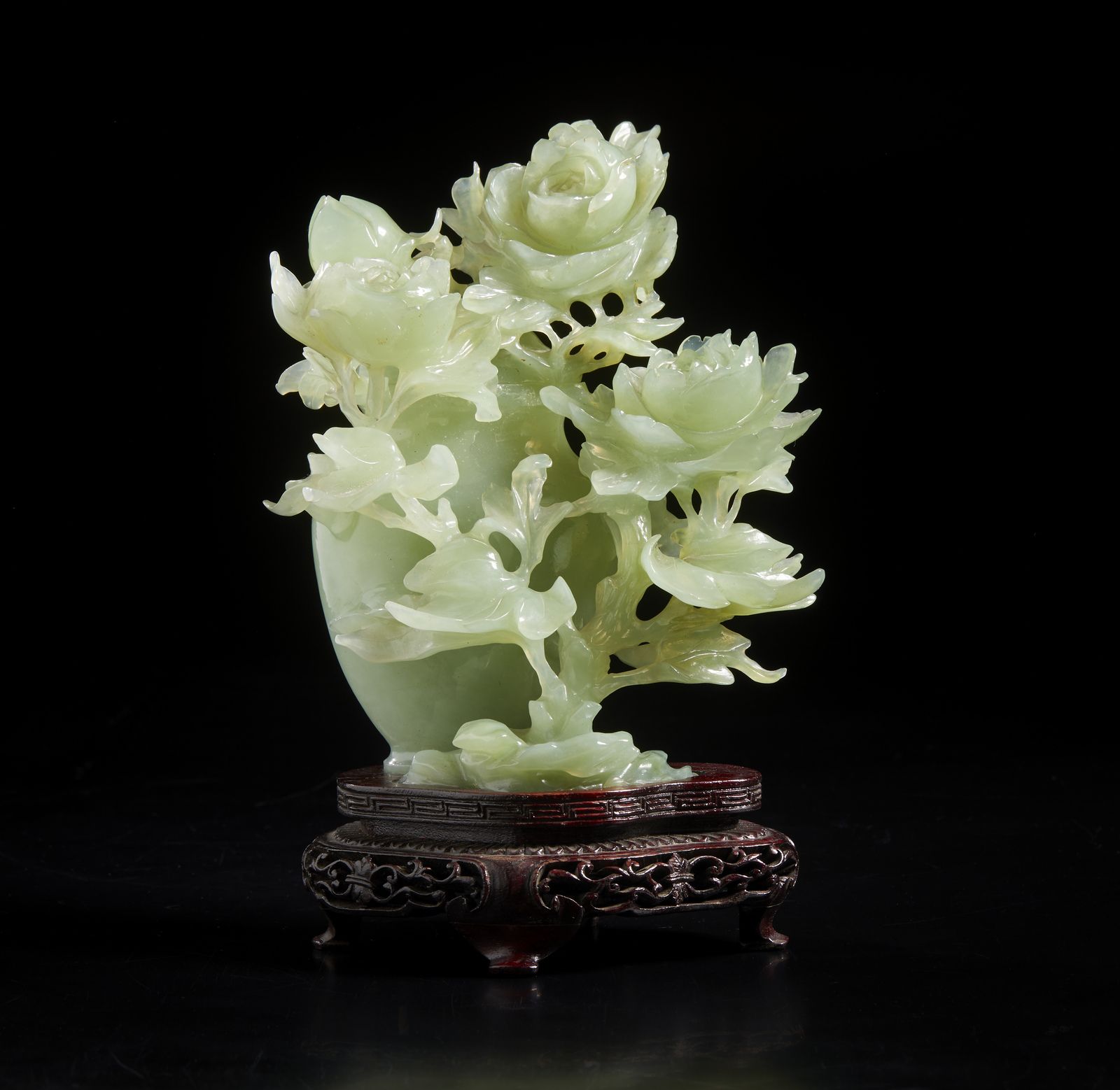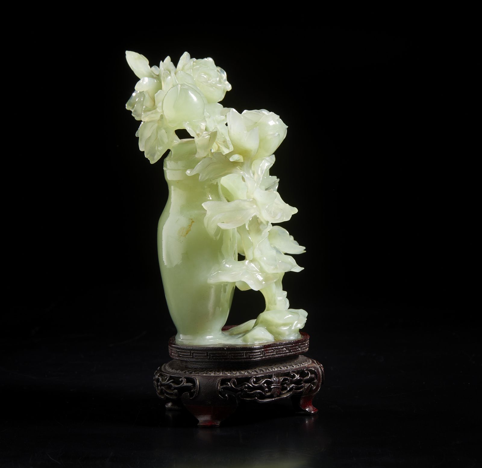 Intaglio in giadeite raffigurante vaso di fiori Cina, seconda metà XX secolo