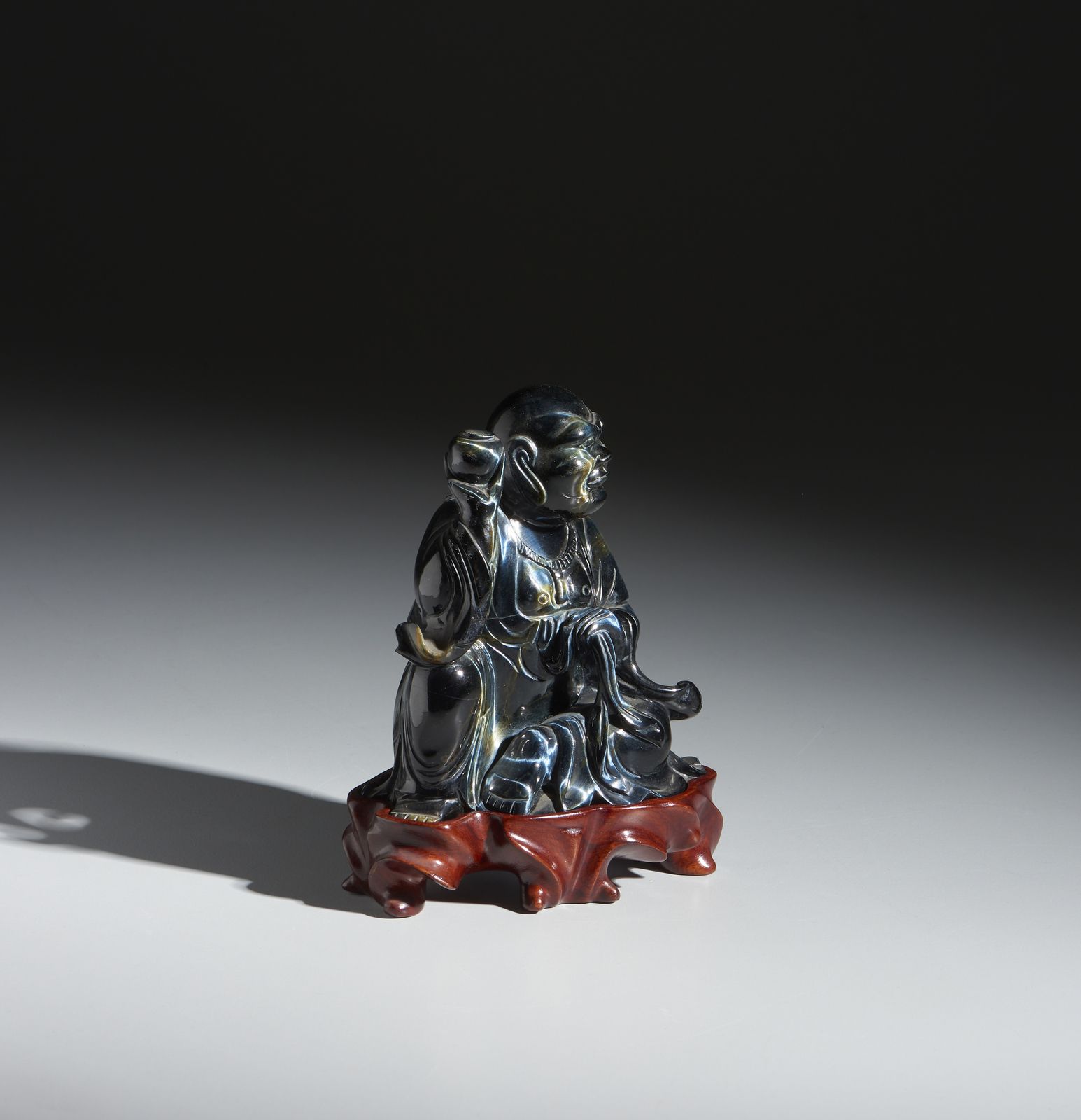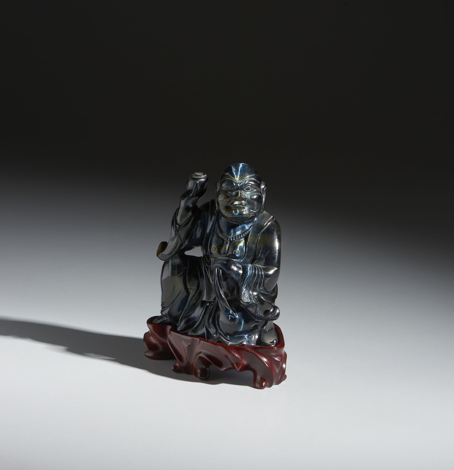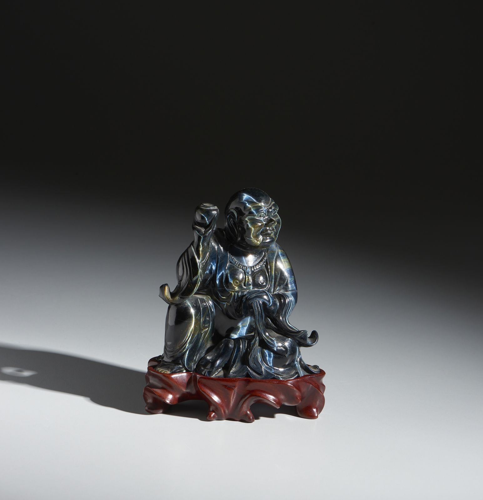 Intaglio in occhio di tigre raffigurante Buddha seduto. Cina, XX secolo.