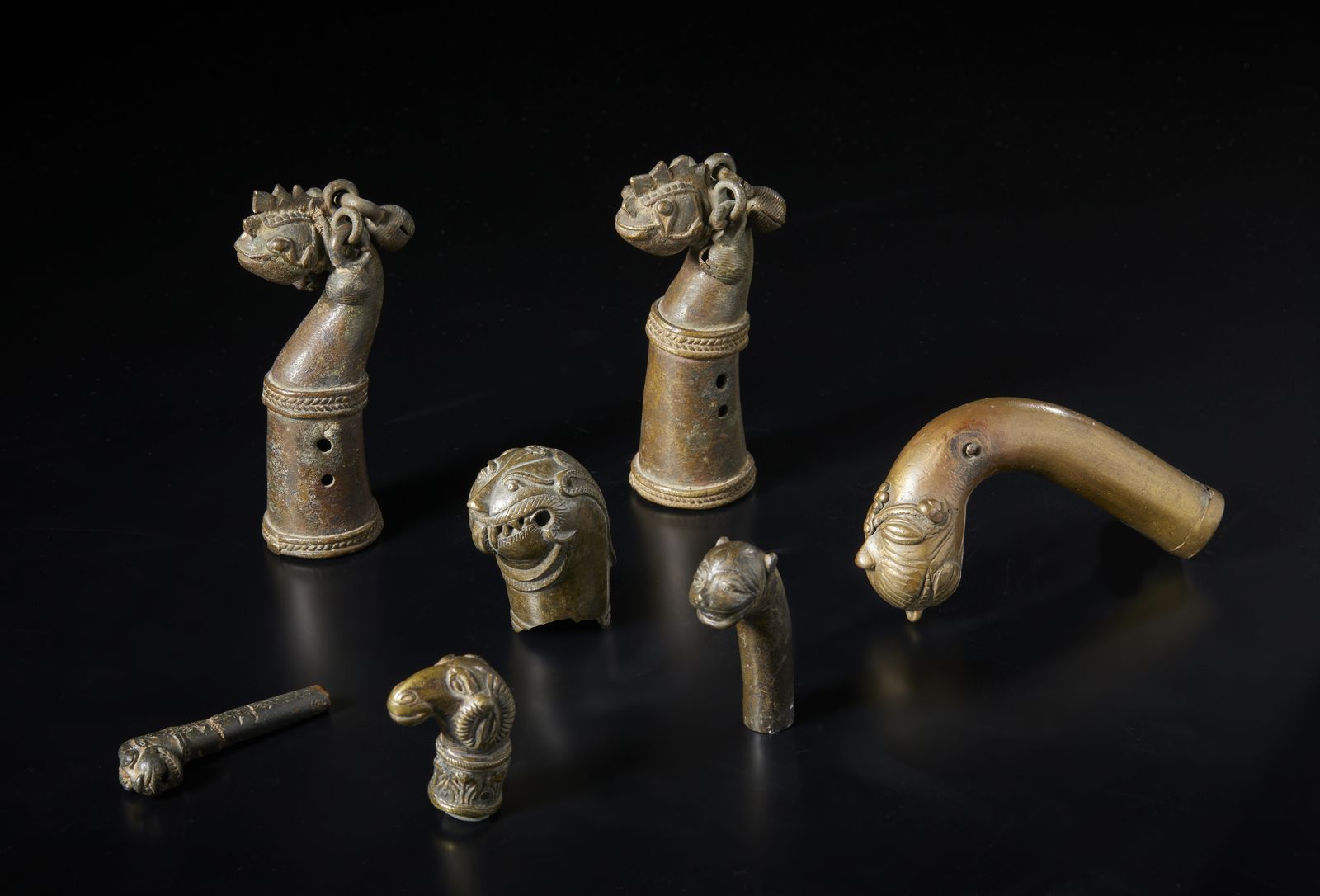 Lotto di sette finali zoomorfi in bronzo. India e Centro Asia, XIX secolo e prec [..]