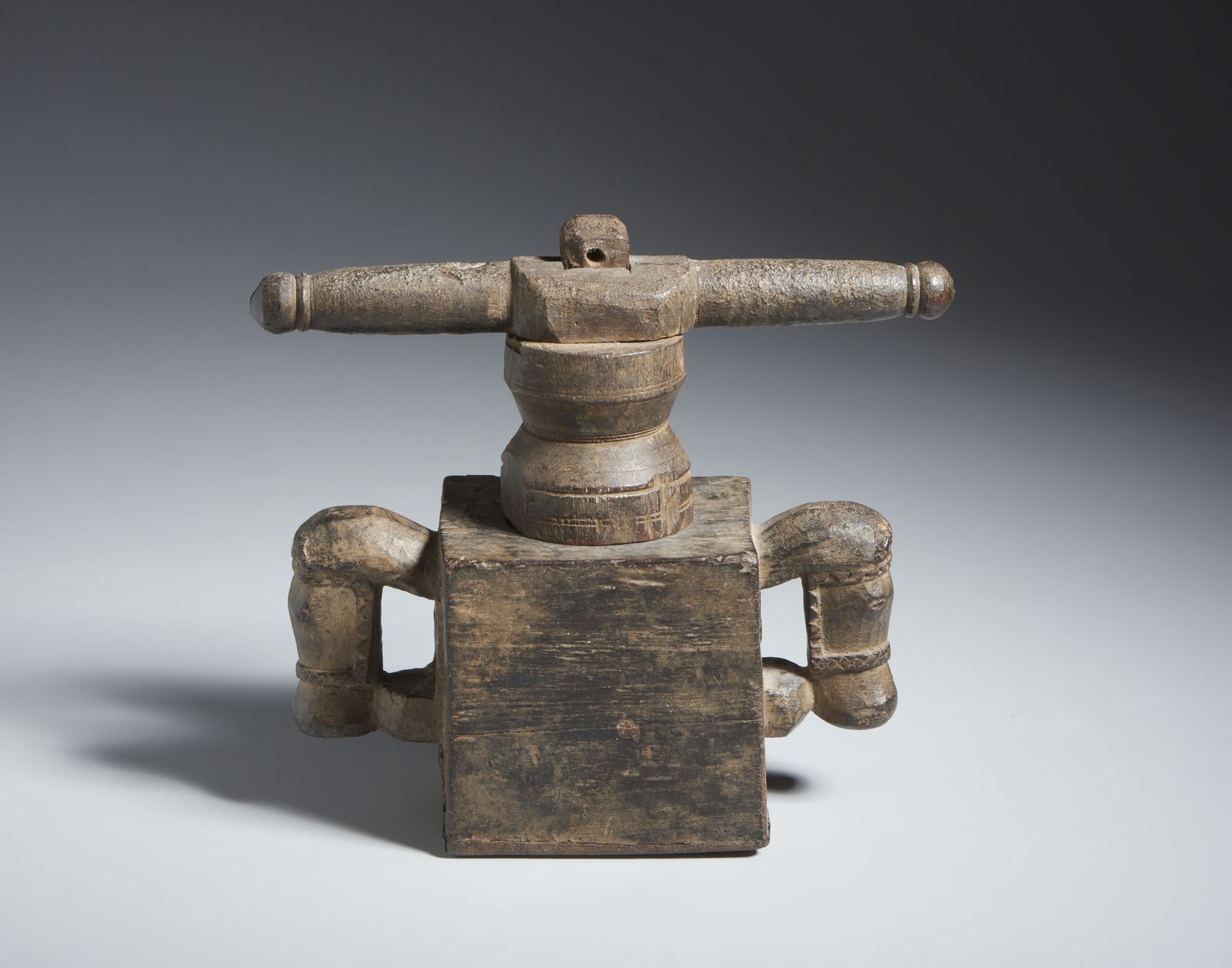 Mortaio per granaglie in legno India popolare, forse Gujarat, XIX secolo