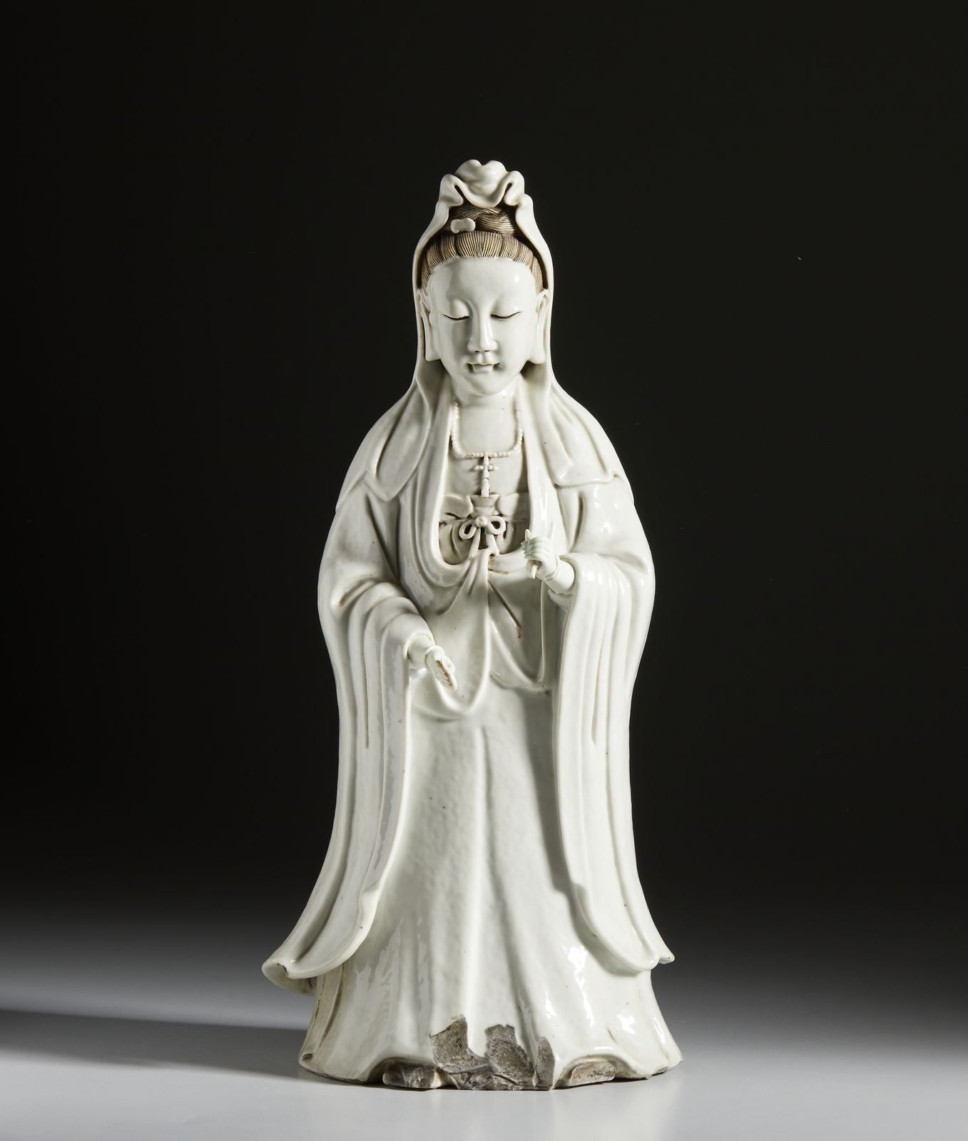 Statua di Guanyin in porcellana porcellana bianca dehua. Cina, Dinastia Qing, XVIII [..]