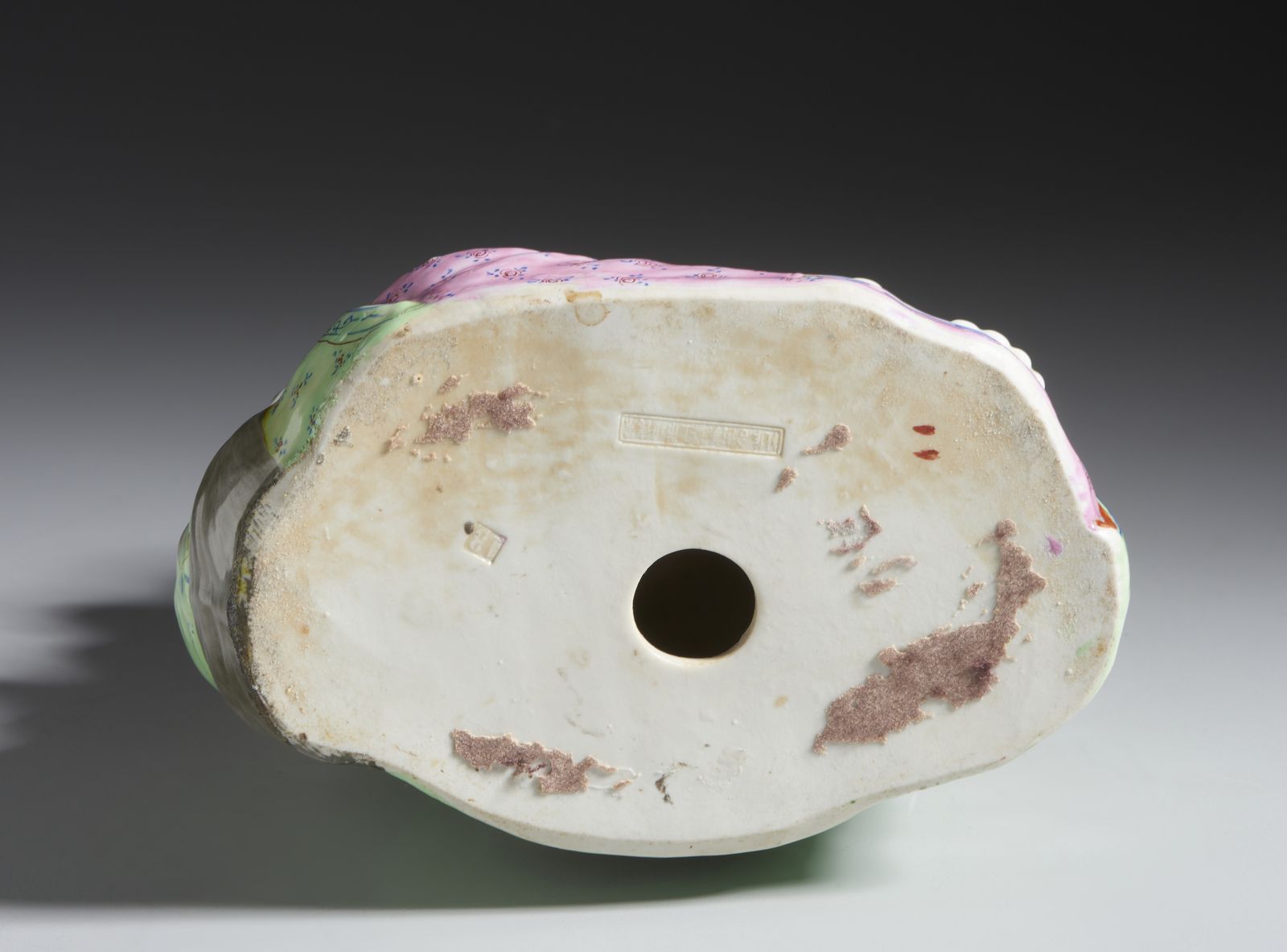 Modellato nella classica posa seduta con bambini che si arrampicano su di lui. Dipinto in policromia.