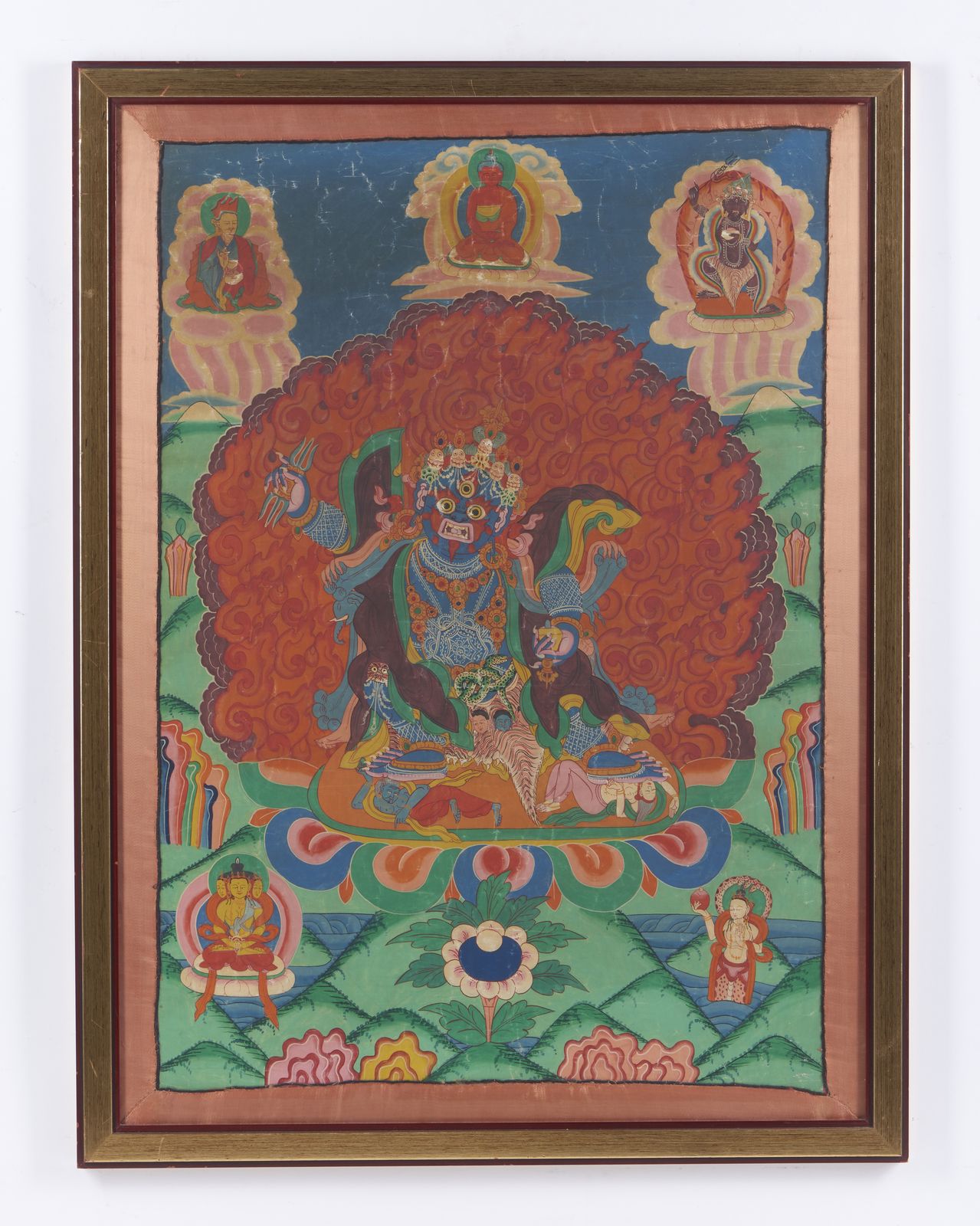 Tangka in tessuto raffigurante divinità irata.Tibet-Nepal, XX secolo.
