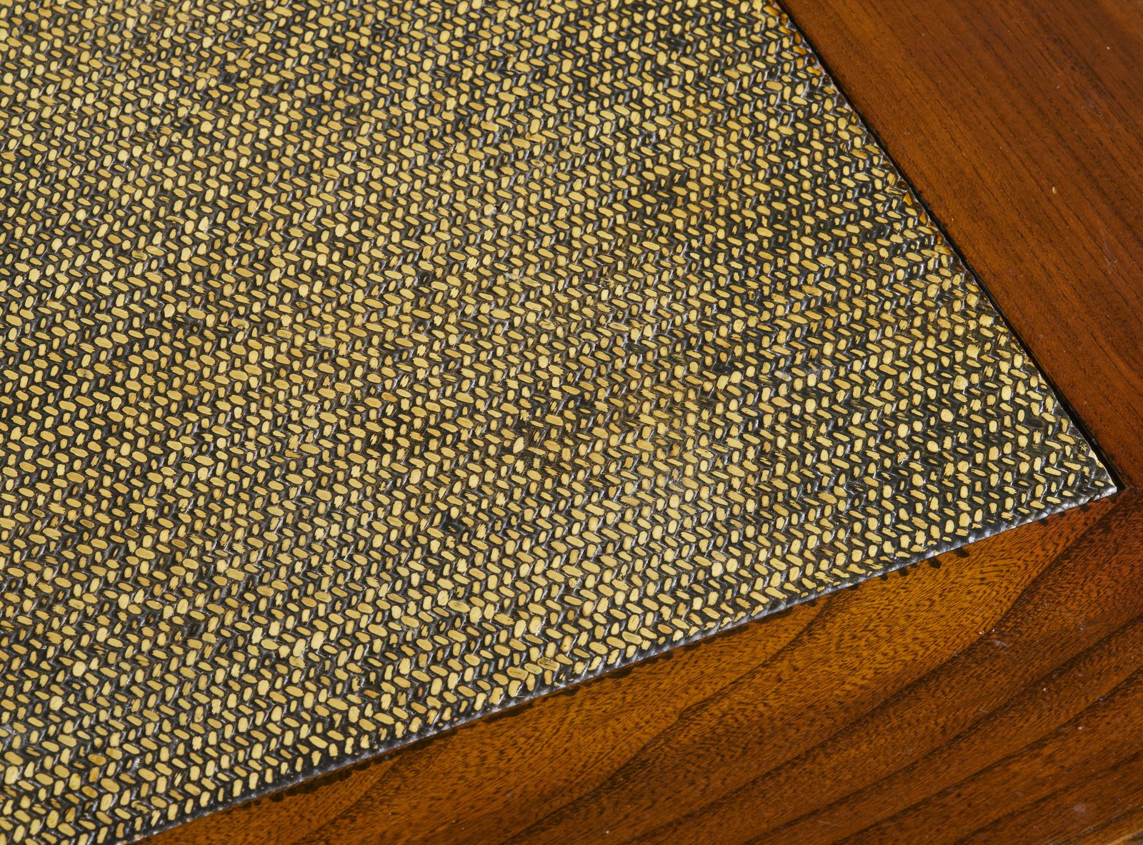 Realizzato in legno di olmo con piano in rete di bambł. Struttura solida ed armoniosa nella lineare semplicitą.
