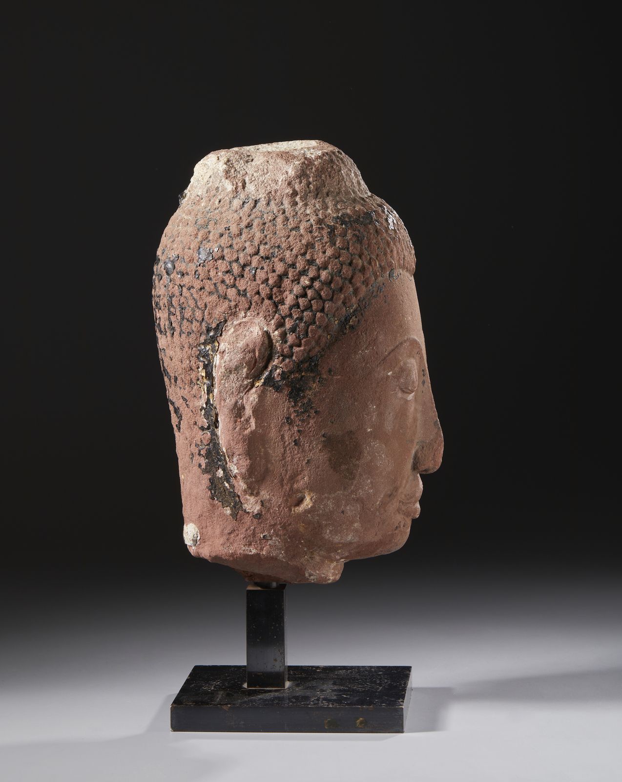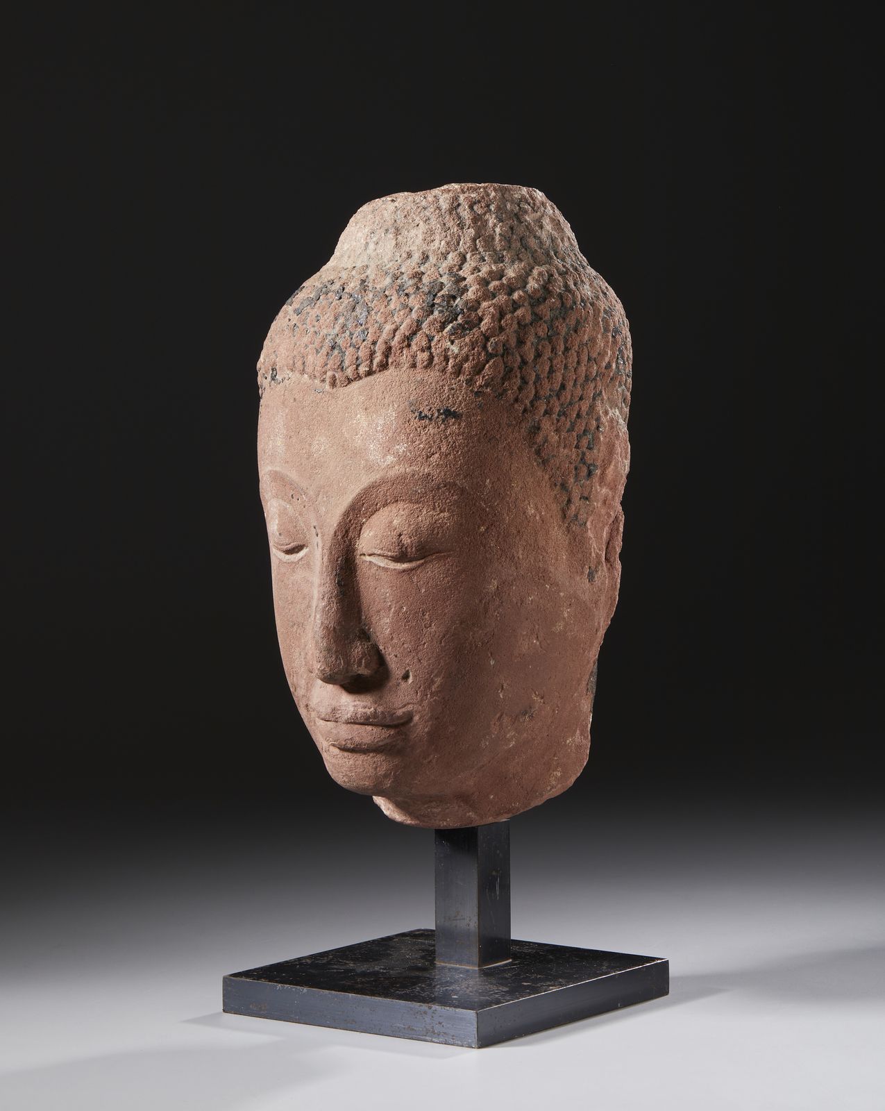 Testa di Buddha in pietra arenaria.Fine Sukhothai - XIV secolo.